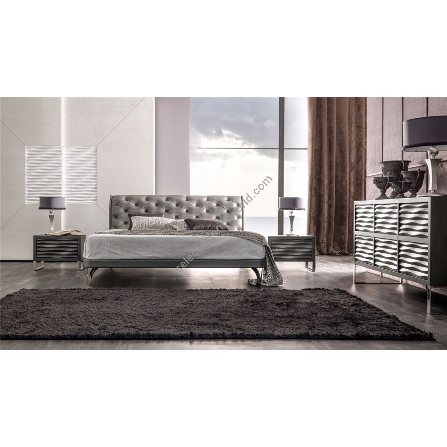 Expression of the collection flexibility, Keope bed has a relaxed attitude, and is able to win the more demanding taste challanges. Material and designof the bedheads melt in an incredible elegant shape, able to join funcionality and great prestige.Keope is a real masterpiece of the modern luxury, typical of Corte Zari Brand.