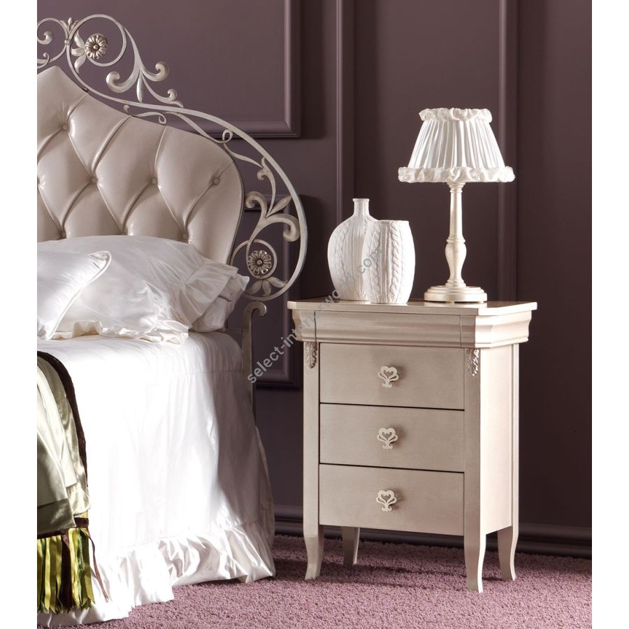 Classic, elegant, flamboyant and yet sophisticated hand wrought-iron bed, with hand-forged details. A bed with opulent and rich lines, where decorative details underline the high technical value of the craftsmanship. Bedhead is enriched by a capitonné, quilted or smooth padded panel upholstered in a wide range of fabric, leathers, eco-leathers.