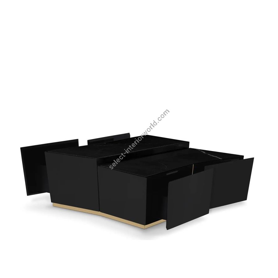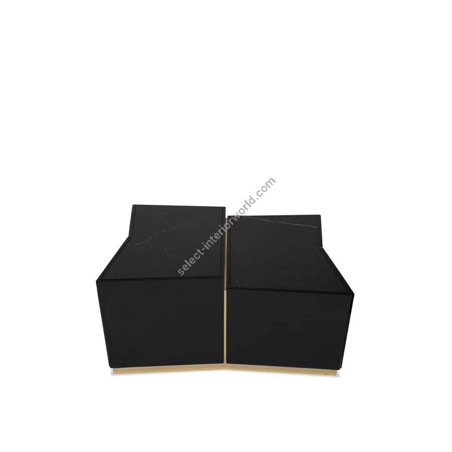 An impressive display of elegance, the Beyond Center Table showcases its exquisite capacity to enhance any ambiance with its luxurious presence. Made with a delicate combination of polished brass, wood, and a Nero Marquina marble top, this modern center table is an alluring centerpiece for any living room or hospitality project.