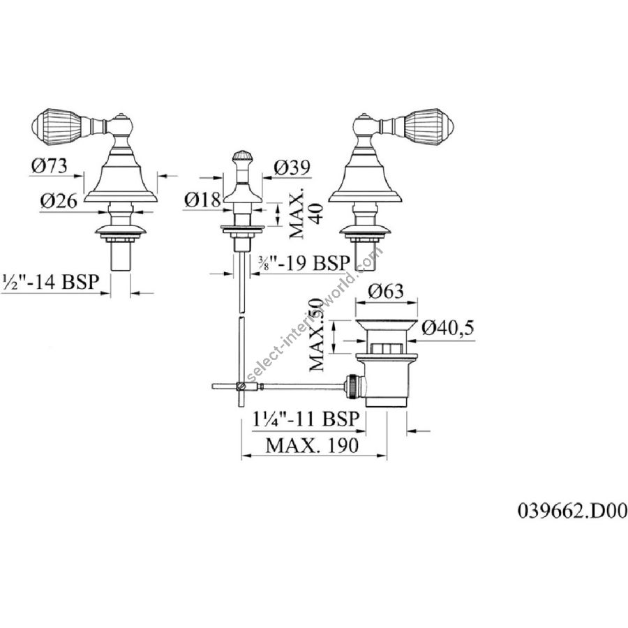 Bronces Mestre / Bidet Fittings / Three holes bidet set with Swarovski crystal 039662.D00.50