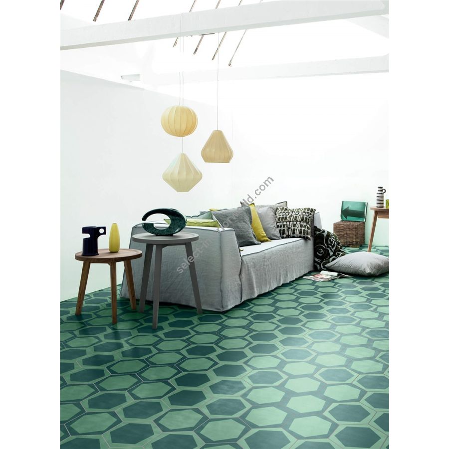 Tiles made entirely by hand using high-strength cement blended with coloured oxides. Square (200x200 mm) or hexagonal in shape (200x230 mm), 14 mm thick, the tiles are cold pressed and treated to protect their surface and ease the cleaning.
