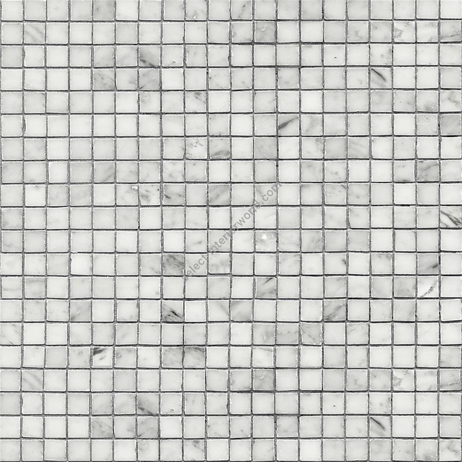 Marble mosaic made with honed hand-cut tesserae, measuring 1,5x1,5 cm, with matt finish, and joints of approximately 2 mm. Sheets supplied in size 34x34 cm.