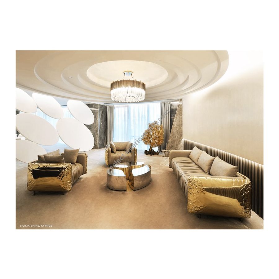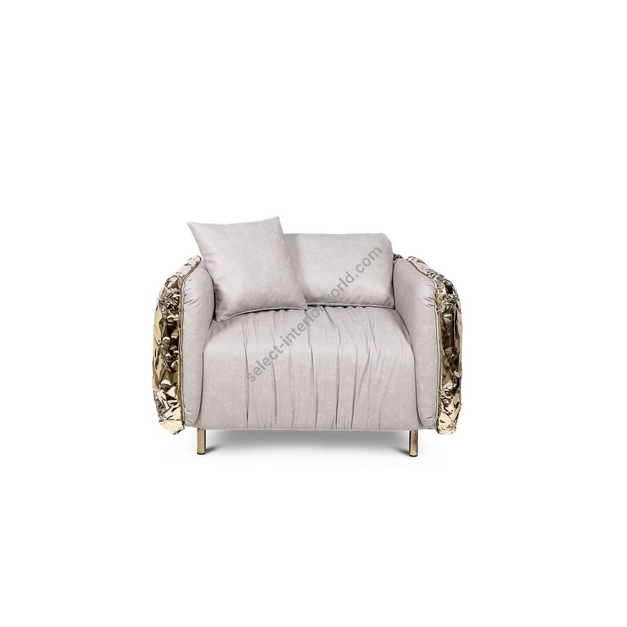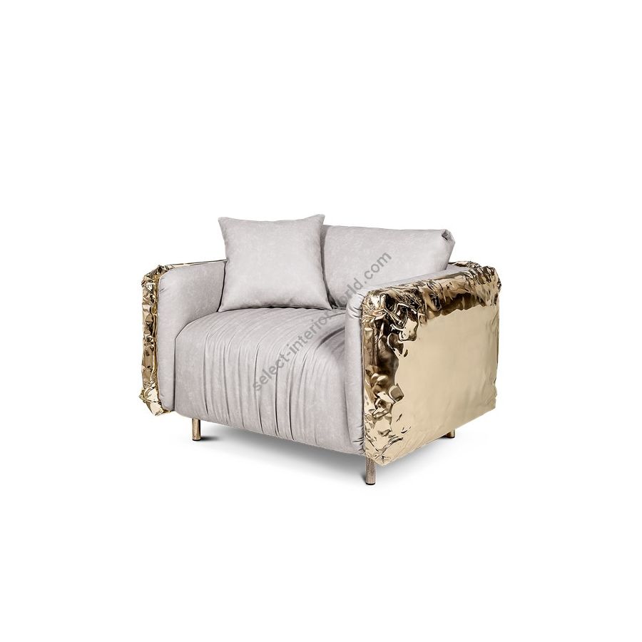 Imperfectio modern armchair is the expression of imperfect aesthetic, the appeal of authentic art that is truer to life. An accent armchair that praises artisanal work as the ultimate form of art that is quite intentionally imperfect. Through its unique existence and shapes, the modern armchair determines its history. The irregularities and flaws over the manual hammered brass expose the beauty of imperfection. Some parts are roughly asymmetrical at the surface yet comfortable and smooth in a peculiar way to excite a desire for complementing your living room.