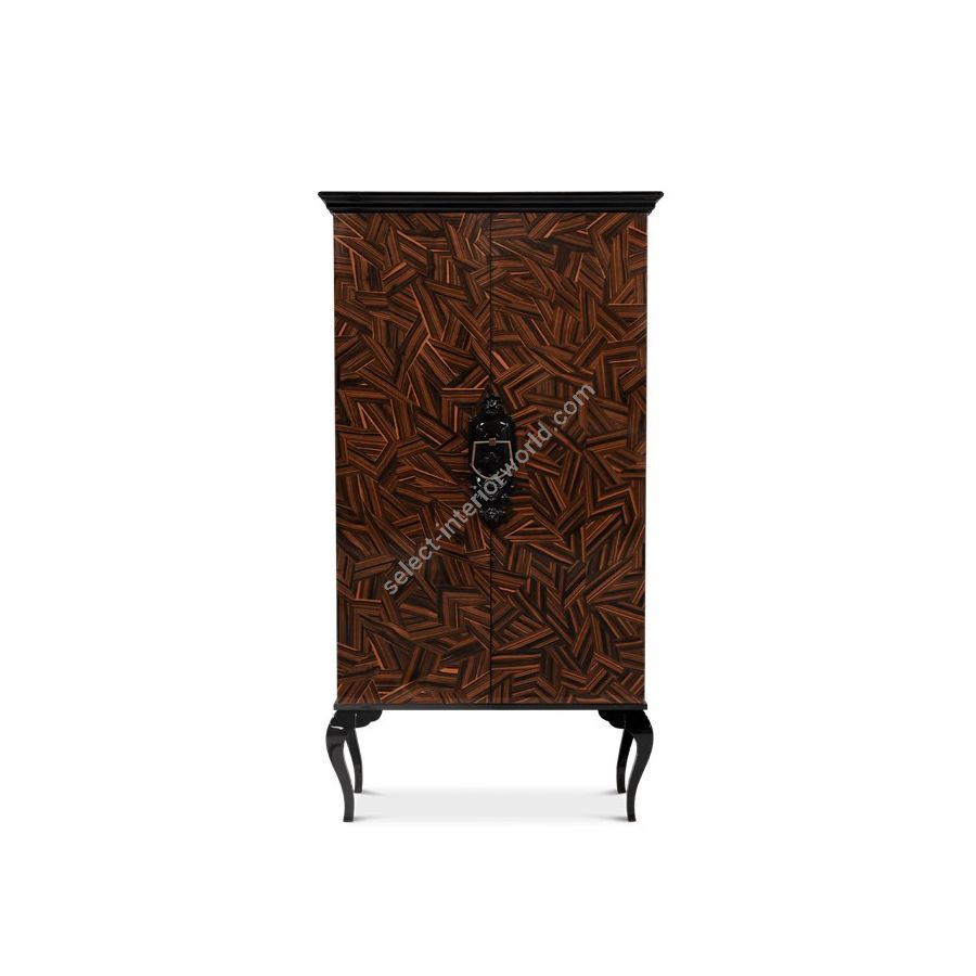 The Guggenheim Museum has inspired the concept of this cabinet. Boca do Lobo believes that Guggenheim cabinet is among the finest and most elegant cabinets of its collections. This handcrafted unique piece is extremely versatile and ideal for storing glassware and fine silver collectibles in your luxury home. A great compliment to any classic or modern interior setting. The Guggenheim cabinet is available in three finishes (poplar root, ebony geometric and ebony royal), with black lacquered wood top and legs. Boca do Lobo's Guggenheim is handcrafted in Portugal, according to craftsmanship techniques, by master artisans who pulse the art of work wood and glass in their veins.