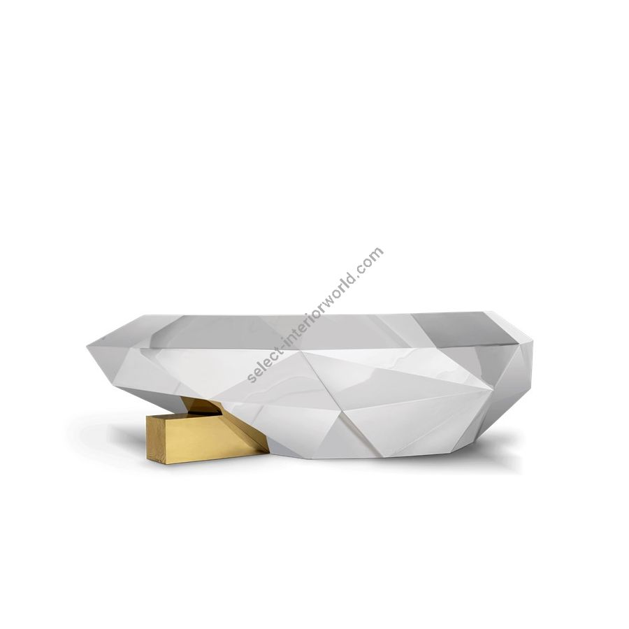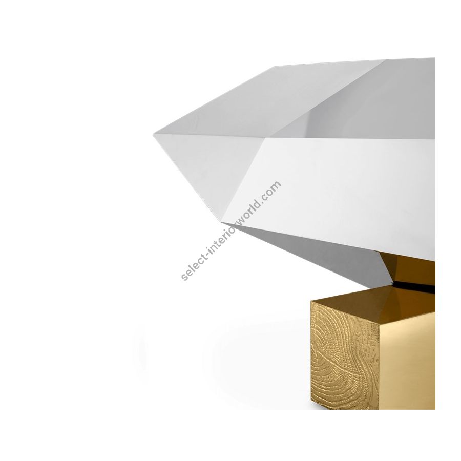 Projected to be the jewel in the crown of the Portuguese brand Boca do Lobo, the Diamond Center Table is a reflection of the furniture jeweler’s expertise and quintessence, undoubtedly deserving its title. This opulent object, full of resources and desire, has two carefully sculpted doors that reveal a gold lined interior with shelves and two drawers. This piece is inspired by the gothic furniture of the romantic period, with its capacity to take advantage of the power of imagination, prevision and escape, without forgetting its unique character.