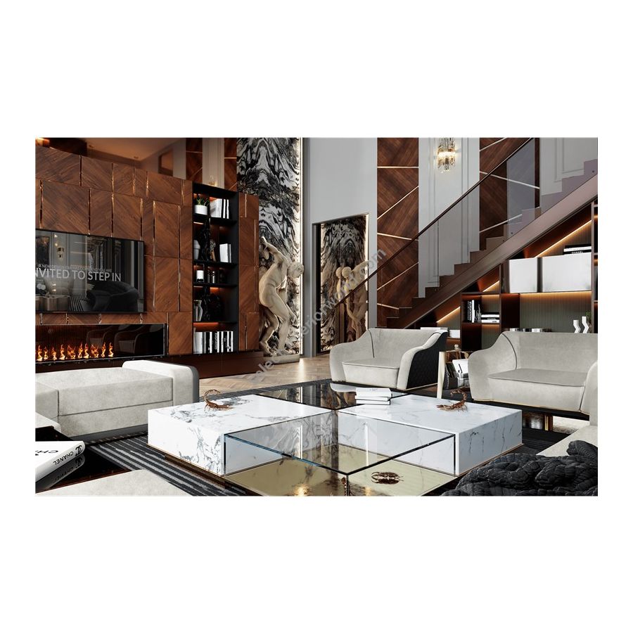 The enormous success of the Metamorphosis Series gave birth yet to another unique creation – Metamorphosis Center Table. Similar to the dramatic transformation and the sudden change in the animal's body structure, Metamorphosis Coffee Table experiences new unexpected design techniques, noble finishes through a meticulous artistic process. The coffee table is composed of two fragments, finished in mirror and noble marble and beautified by the presence of golden creatures that are prepared for their ultimate metamorphosis.