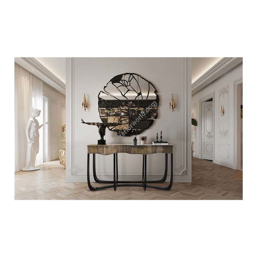 With Sinuous Patina Console you will successfully create a luxurious environment. Sinuous is made for those who love harmonious lines mixed with exquisite detail. Its design is seductive and lures you into a magical and golden world. To achieve extravagance, Boca do Lobo’s artisans handcrafted the structure in mahogany with a high gloss black lacquer finish and top coated in polished brass plated, bringing up the vivid and bright side of Boca do Lobo. This luxury furniture design contains three drawers, adding function to the unique piece.