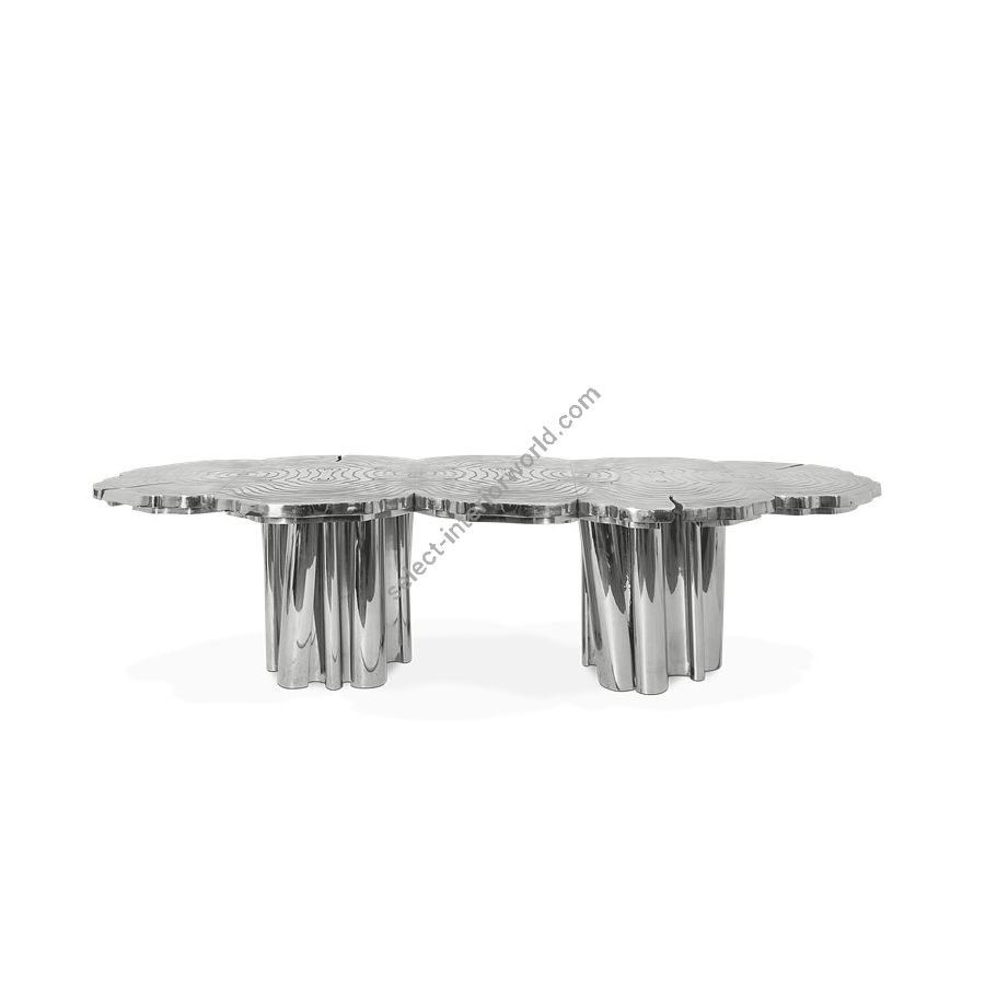 Fortuna is a contemporary dining table with one-of-a-kind design aesthetic and refined statement to the most influential minds. Representing the essence of empowerment, sophistication, and mystics, the Fortuna features an exclusive stainless steel surface for ground-breaking dining rooms.