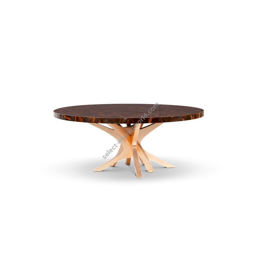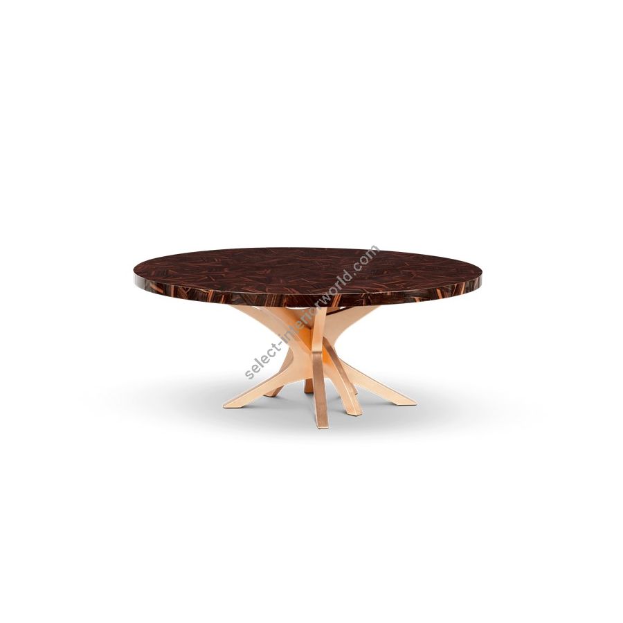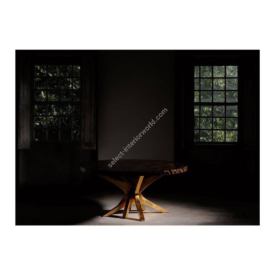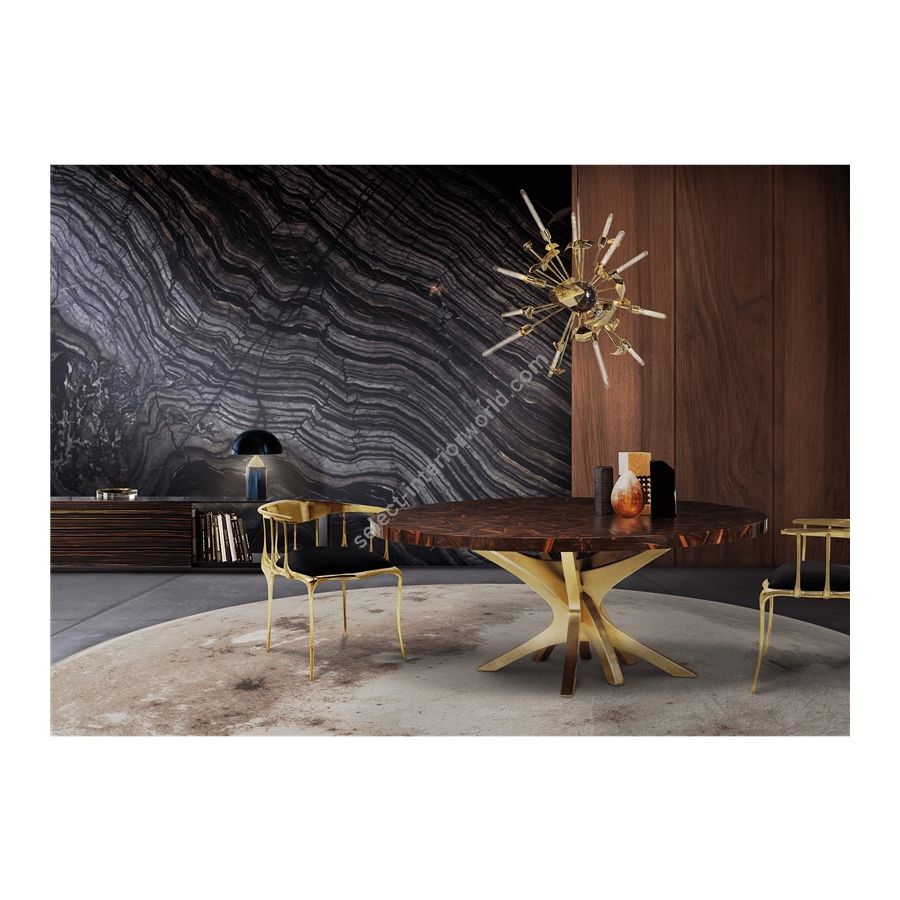 Boca do Lobo’s exclusive Patch Table has intricate wood veneer top and sculptural base for adding sophistication to any kind of home setting. Patch table fits on a contemporary living room or on a sophisticated kitchen. The top of this dining table is covered with an intriguing geometric mosaic of wood veneer and the base is made from oak. This round center table is then finished in high gloss varnish. It is 76 cm high and 160 long, perfectly crafted with the uniquely legged bottom matching any kind of home or flooring aesthetics.