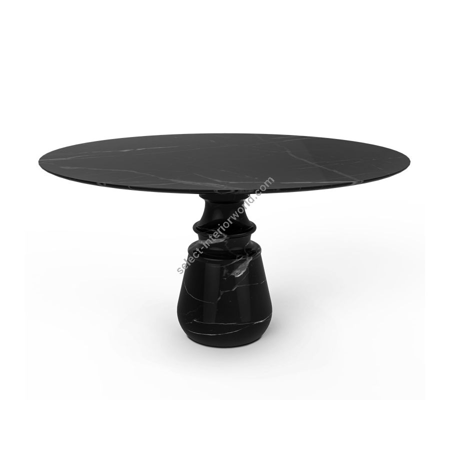 Playing with function and sculptural form, Pietra dining table shapes a timeless experience through its classical aura and finest Nero Marquina black marble. Reminding the renaissance era, its round top gently lies in one robust marble column, conceived from a solid block hand-sculpted and turned to create different details for additional texture. A noble material carved in Boca do Lobo workshops, conceiving a statement black table ideal for a grand entryway, elegant dining rooms or other open settings. Ideal as a four-seater table, the contemporary feel of Pietra is effortlessly stylish and it is suitable for indoor or outdoor use.