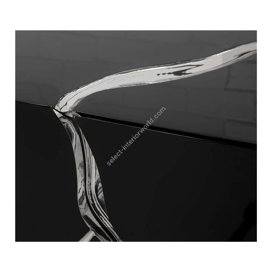 Its organic features are achieved through the manual fitting of stainless steel, and a glossy black lacquer finish that bursts from the inside to the distinct exterior façades. Different-shaped doors and drawer are embellished by hammered silver details, conveying both sophistication and elegance to bring a new contemporary verve into refined interiors.