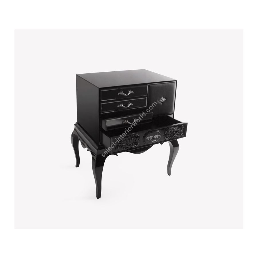 Drawing inspiration from the iconic Mondrian Sideboard, the Brooklyn Nightstand embraces Boca do Lobo’s design philosophy to the fullest. Picking up classic design elements, and resorting to the use of traditional artisan techniques, the Brooklyn Nightstand fully re-interpretes the way materials, patterns and functionalities are combined. Integrated within Boca do Lobo’s quintessential Soho Collection, the Brooklyn is urban chic in nature, yet with aristocratic qualities. It features high-gloss black or white lacquer finish, with subtle leather accents fitted with detailed handles, adding to the privileged Boca do Lobo experience.