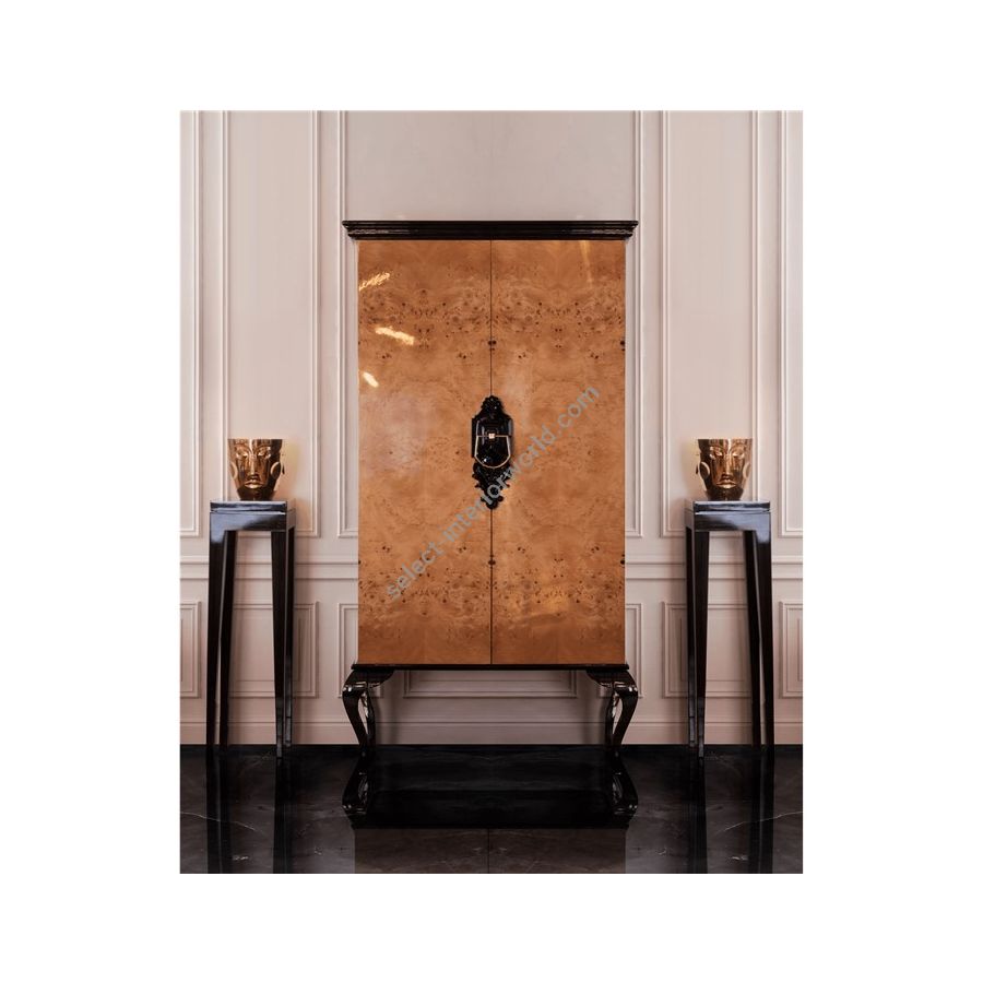 The Franklin display stand with its long lean tapered legs and, bautiful wood veneer, is perfect to give a distinctive style to your home décor. This versatile exclusive furniture piece can be placed at your entrance hall or dining room, giving it a sophisticated style. Made from the noblest materials, it is destined to add grace and grandeur to any modern space. As an elegantly handcrafted console table, the Franklin will also look perfect in your bedroom. It is available in rosewood or palisander venners, as well as black or white lacquer.