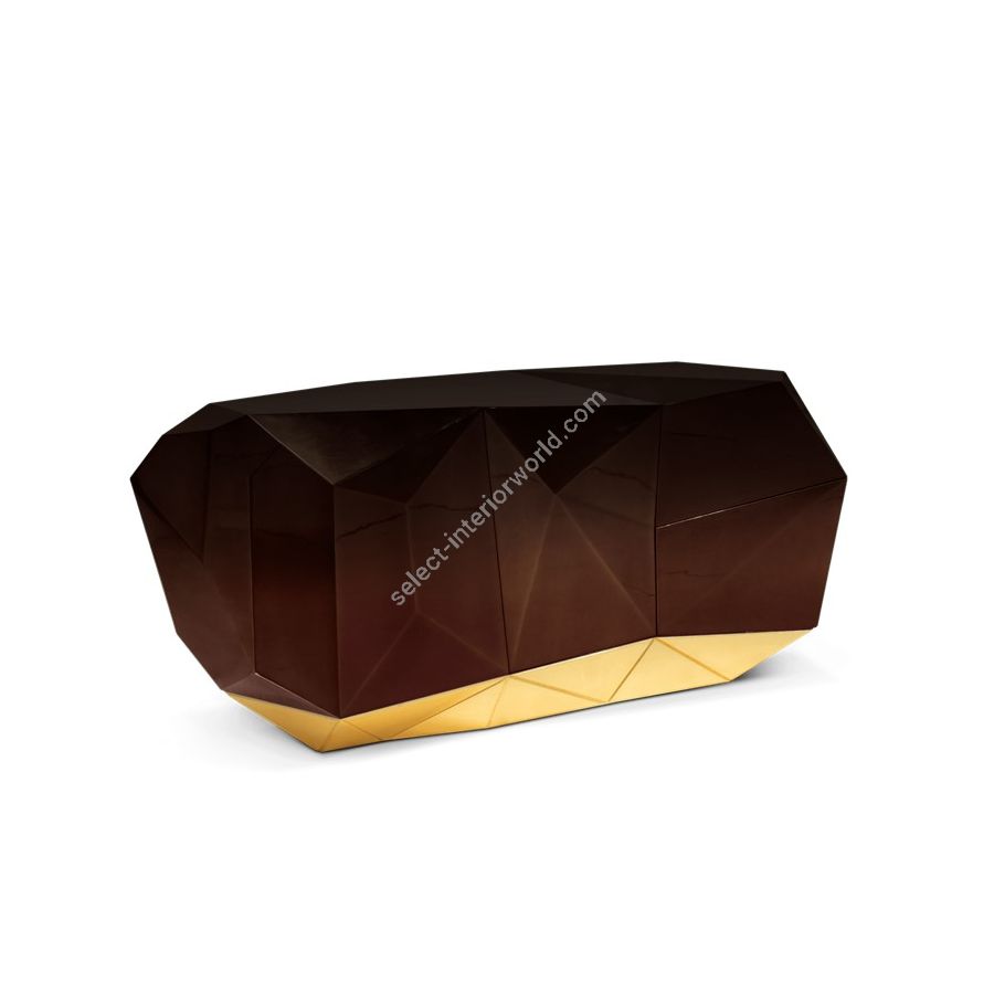 With the style of a precious jewel, the new Diamond sideboard, colored in chocolate brown, will make a splash in interior design. Like the amethyst Diamond, the new sideboard also features two highly sculptured doors leading to a gold leaf interior with a shelf and two drawers. The exterior of this fanciful piece is now presented in silver leaf finished with a luxurious shade of translucent chocolate brown with high gloss varnish. And instead of the whimsical lion’s head feet, the new diamond presents a base made from mahogany lined with bronze mirror.