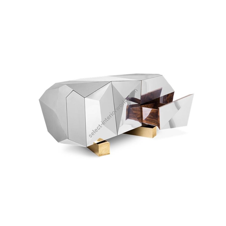 The iconic faceted Diamond Pyrite sideboard is reinvented as a remarkable outcome of architectural thinking with a powerful glistening effect.