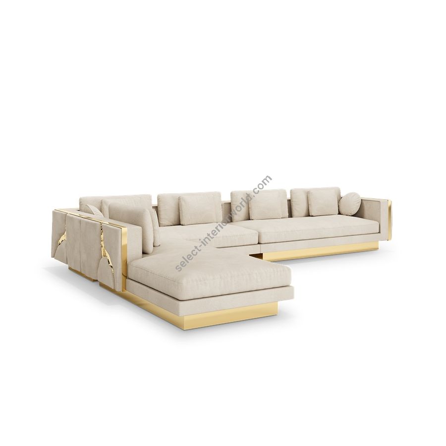 This unique Modular Sofa takes craftsmanship and design to a new dimension. This contemporary design piece is inspired by authentic karst formations. Finding beauty in the most unexpected places, this modular sofa's design showcases some high-end and creative features that are achieved through manual fitting and a combination of polished brass with fabric. A functional artwork piece born from cold and freshly cracked to show off the world its rich, golden, and impressive details. The perfect sofa for a contemporary living room.