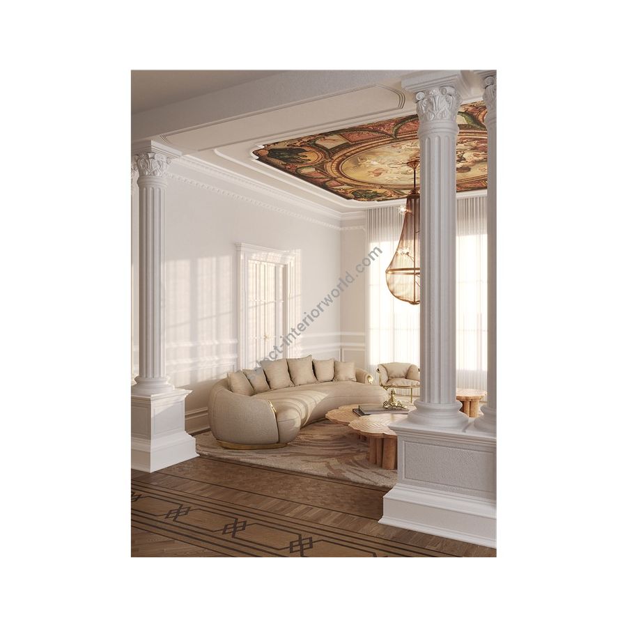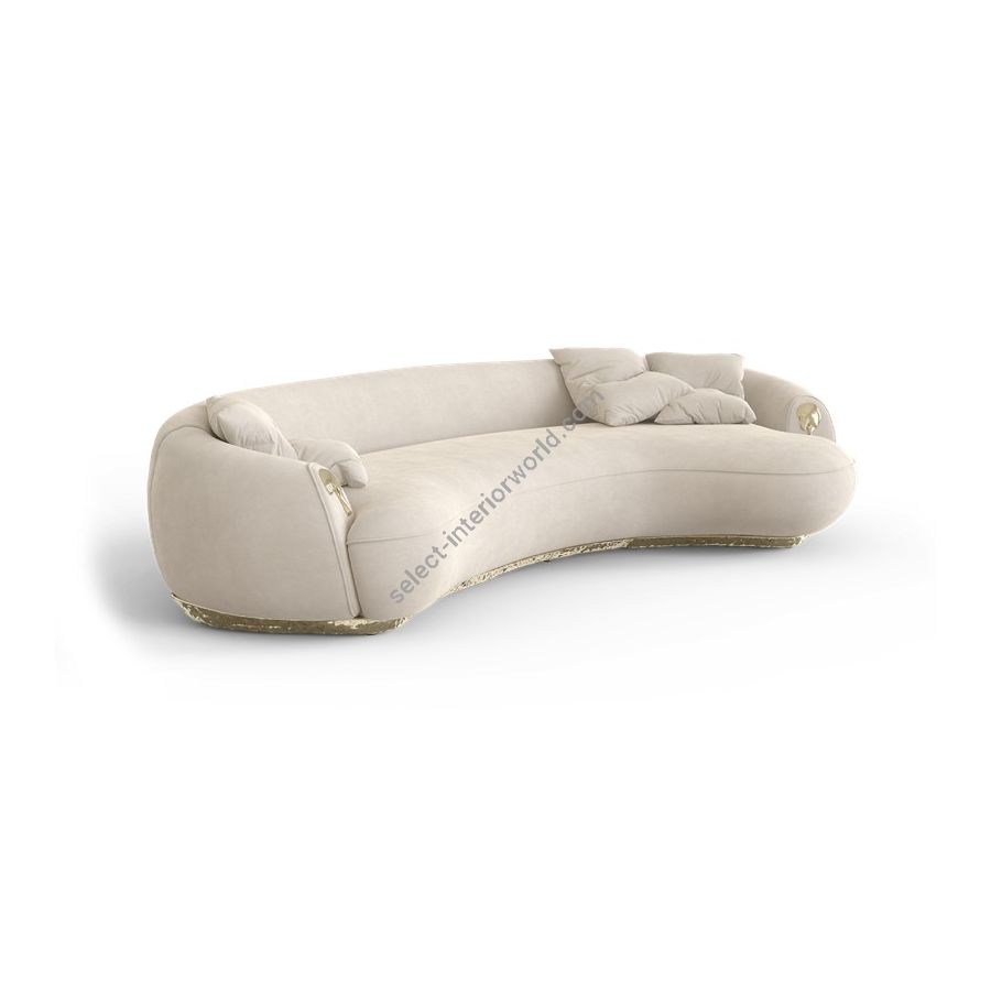Inspired by the spirit and mission of the famous Cirque de Soleil, the Soleil Curved Sofa is a synthesis of styles and senses. Proving that its playful lines can also translate to absolute sophistication, this elegant curved sofa with creamy upholstery embrace a perfect combination between a vintage and a contemporary design to provide a sumptuous option for any modern day room. It features a double-part configuration that offers a multitude of seating without interrupting the flow of the space with individual punctuations. The brass details also perfectly complement the elegant lines of this timeless piece.