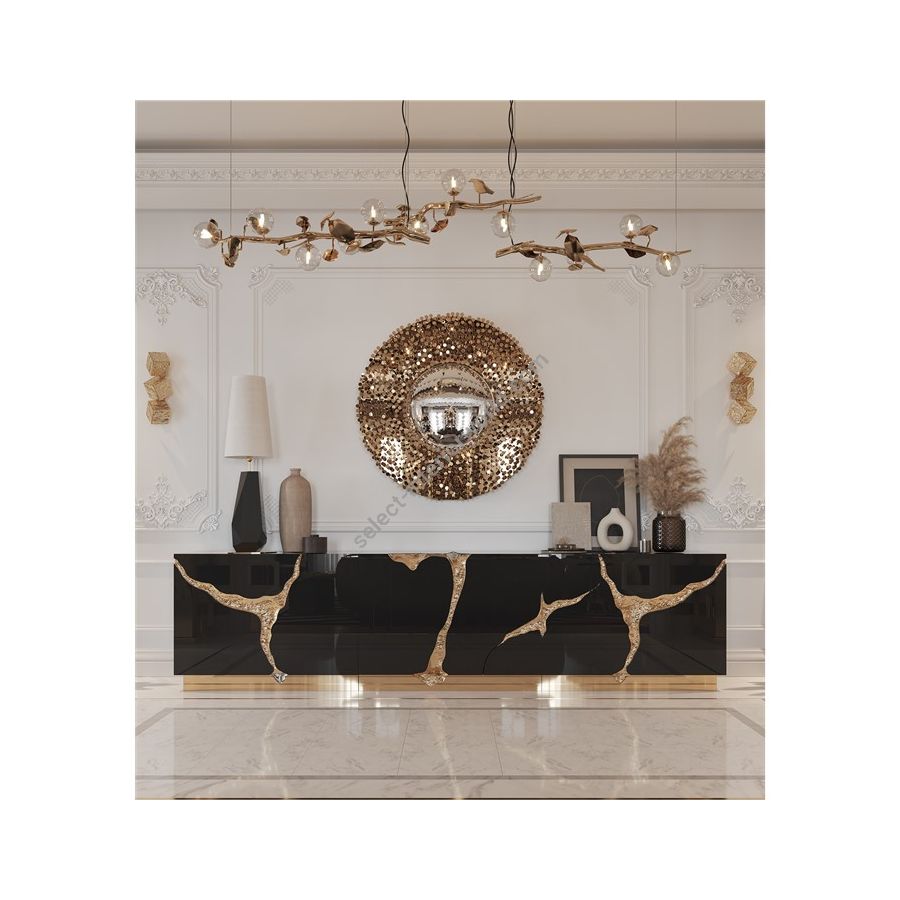 Finished in silver leaf finished with a high gloss varnish. It is also available in emerald, lapis, amethyst or citrine.
