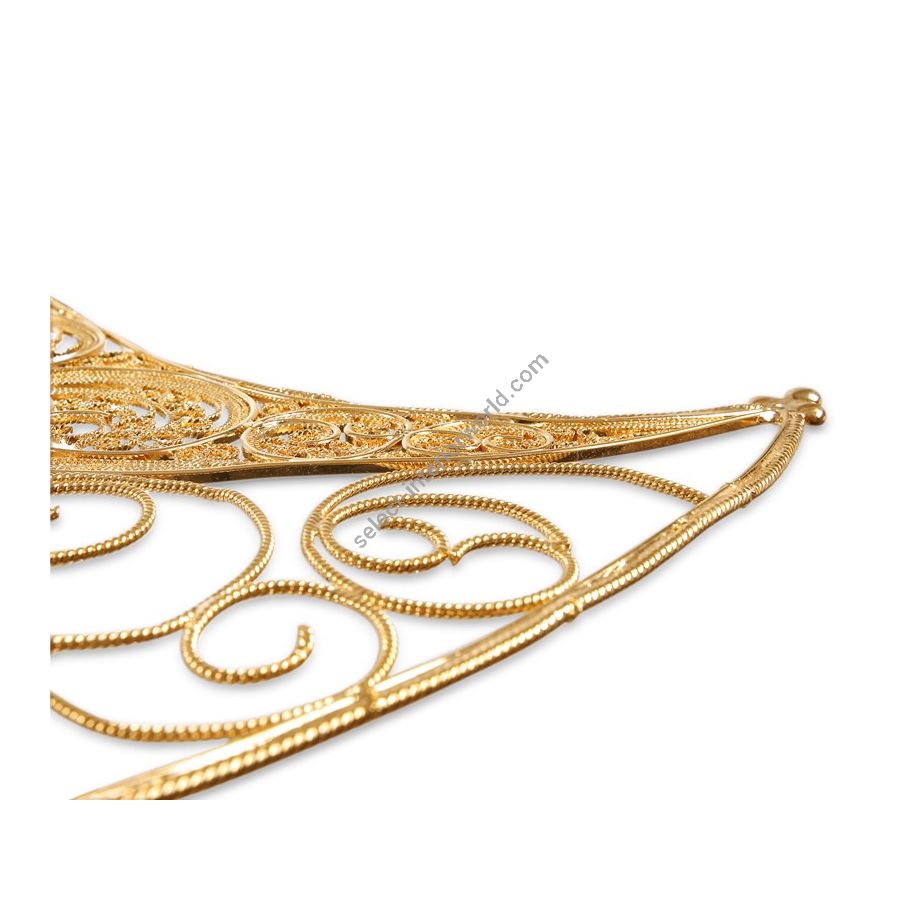 The Filigree Mirror resorts to one of the oldest jewellery making techniques known. Completely handcrafted, with each brass cord fitted with precision, the Filigree Mirror flourishes in a shape traditional to Portuguese culture and art. A true work of art, this luxurious mirror plays tribute to Boca do Lobo's core values heritage and craftsmanship. The Filigree mirror's structure is made from brass cords, gilded in 18k gold. It features a brass sheet that is hand-hammered to achieve its concave shape. A jewelry technique used to solder tiny beads and twisted threads. Filigree is the most delicate technique used to work precious metals, usually of gold and silver. It is an age-old and detailed jewelry expression in which skilled artisans painstakingly solder tiny beads and twisted threads to create striking artistic motifs, suggesting often exquisite and intricate lace-like patterns.