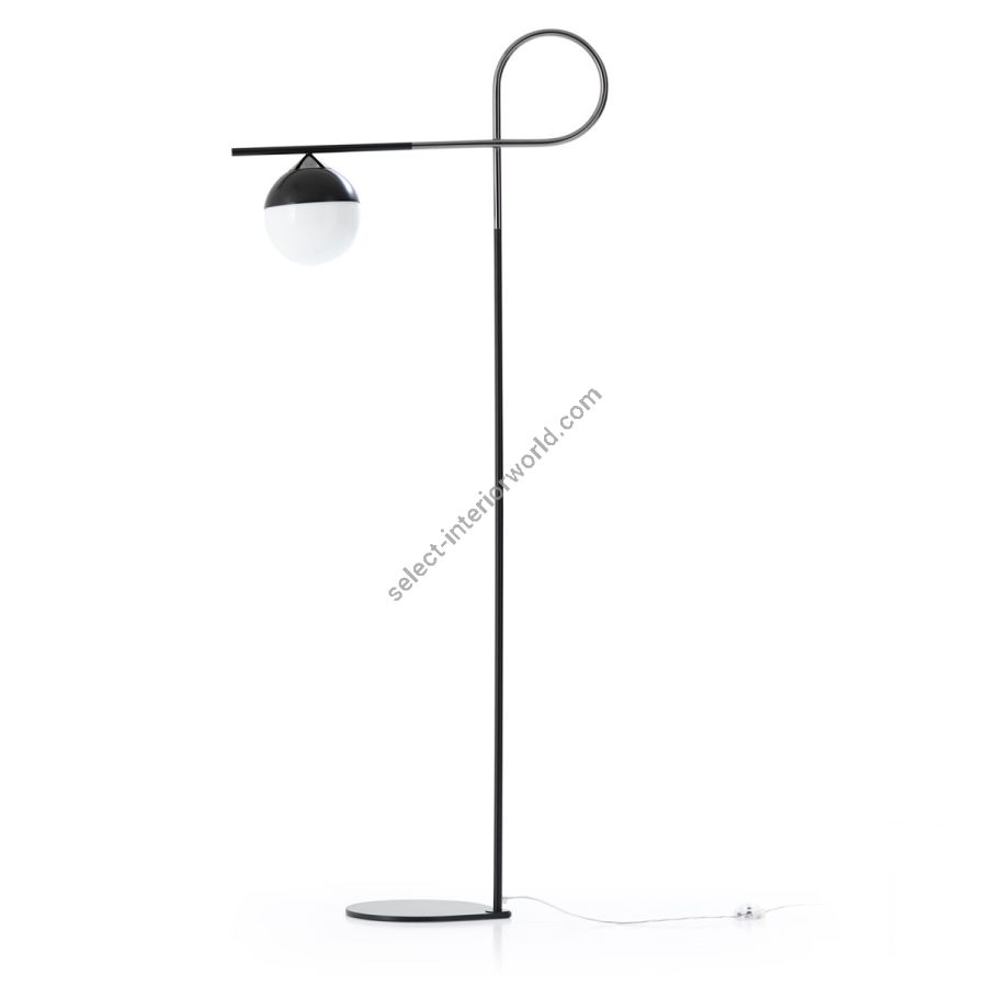 Simple and essential design represented by the metal structure, slender and fine embellished with a knot at its end. The light source is a milk-colored blown glass sphere. The two-tone metal structure, one part chromed and the other painted, is an expression of elegance and luxury. Its simple and clean shapes make it a modern object suitable for all types of environments.