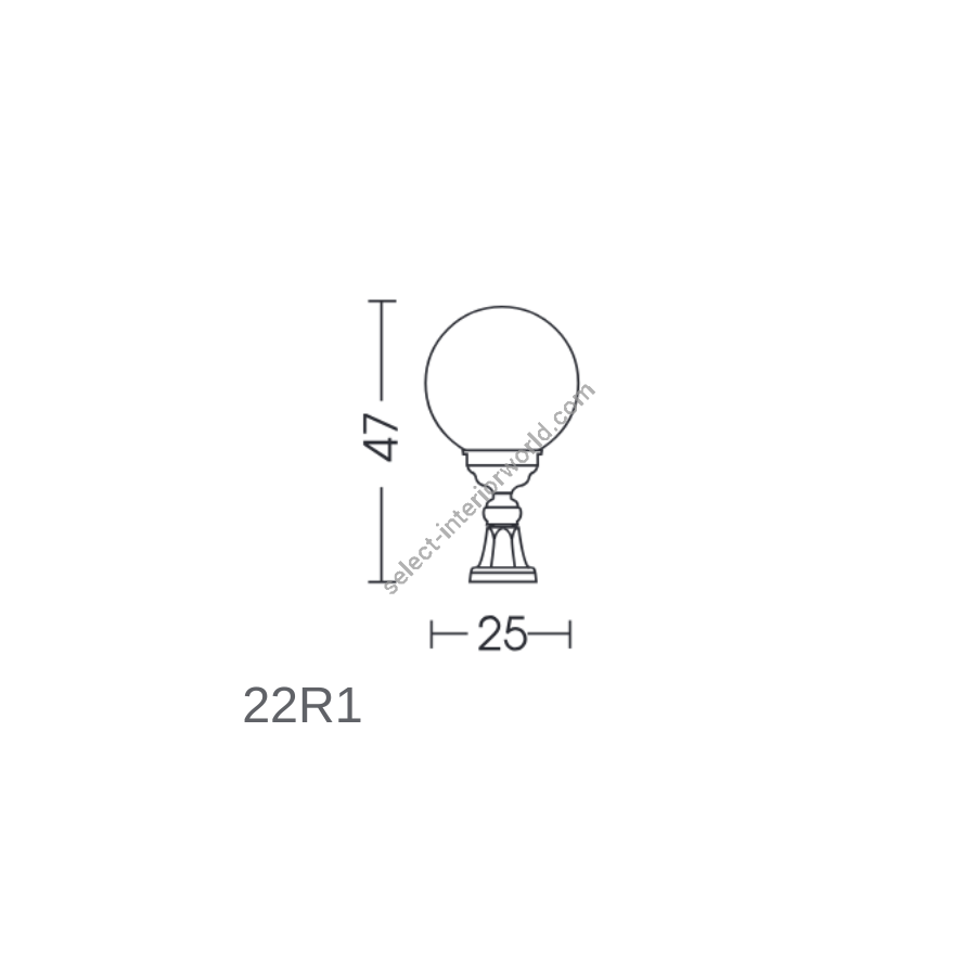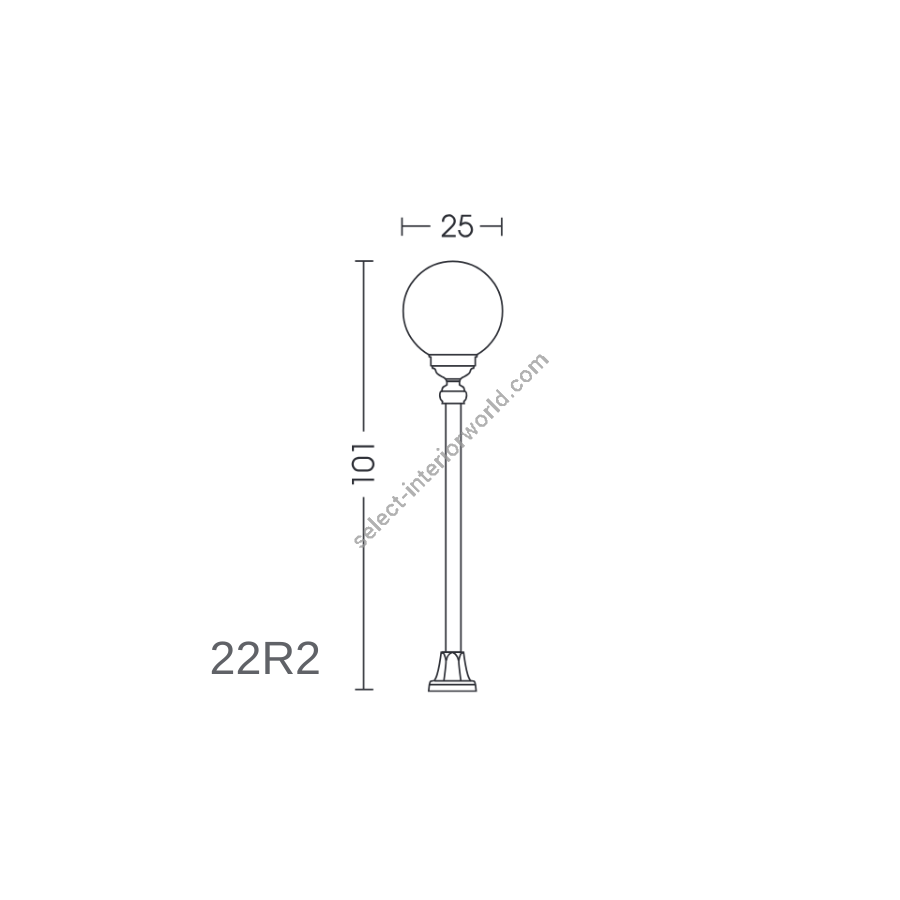 - 22R2 - smooth pole ø 40; cm: H101, W25 / inch: H39.76, W9.84