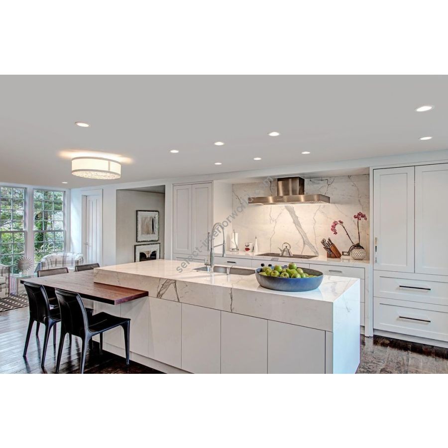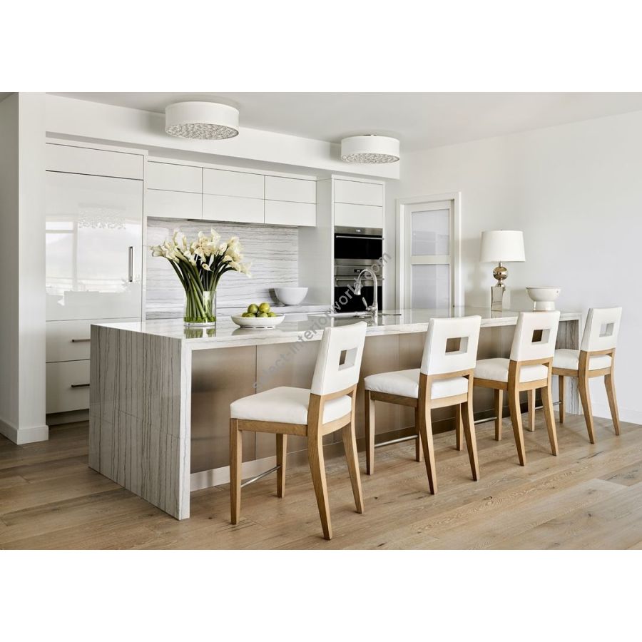 The Catacaos is a sophisticated update on the ancient South American handcrafted technique called Filigrana in which small metal pieces are combined to create a large spiral pattern. This flush mount and its pendant cousin won the Best of Year award from Interior Design magazine.