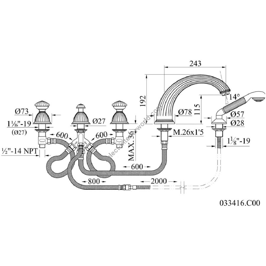 Bronces Mestre / Bath-Shower Fittings / Bath shower set for deck with porcelain 035011.M00.30