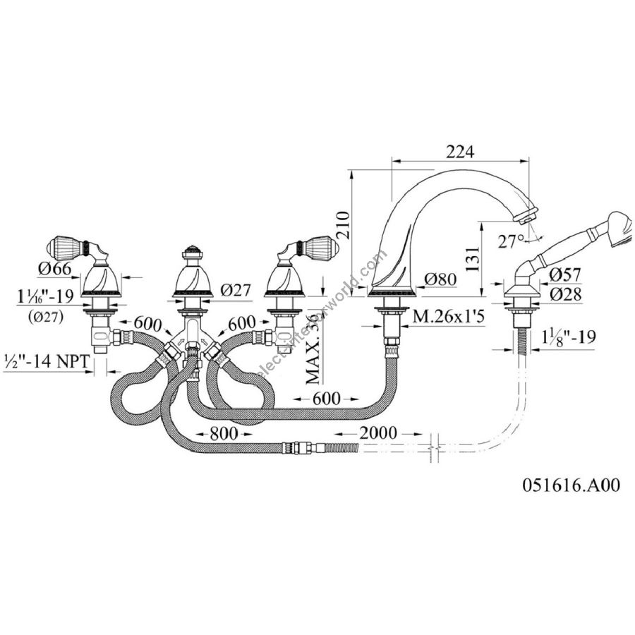 Bronces Mestre / Bath-Shower Fittings / Five holes bath set 051416.B00.50