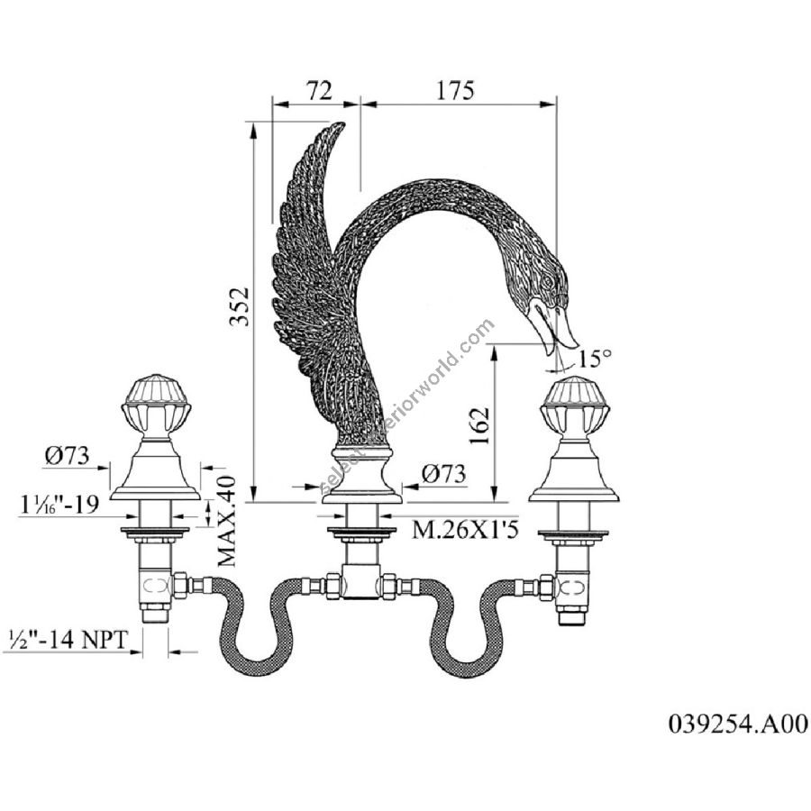 Bronces Mestre / Bath-Shower Fittings / Three holes bath set with Swarovski crystal Swan series 039254.A00.00