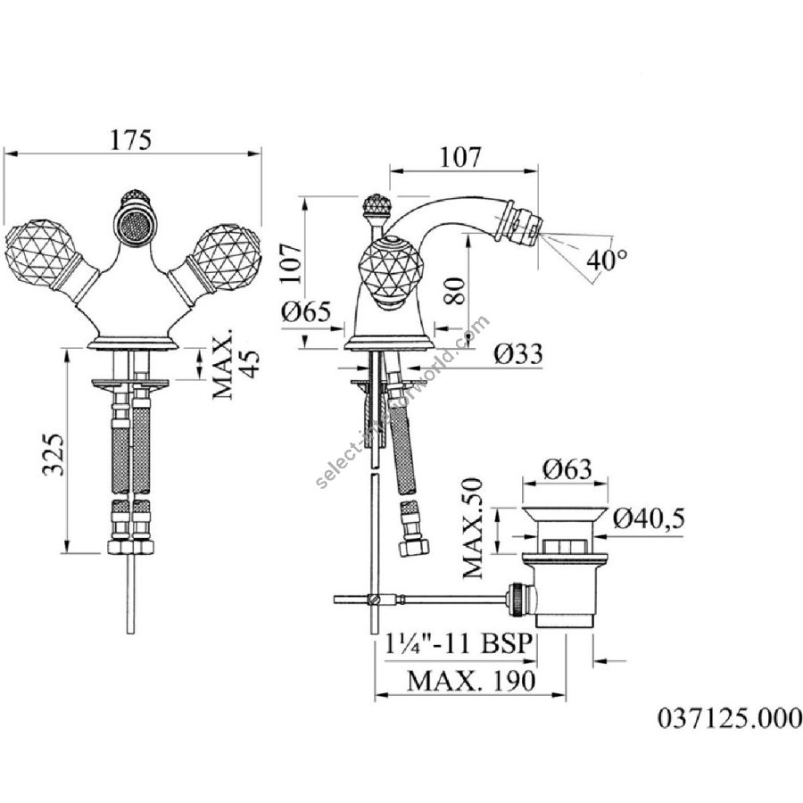 - Bronces Mestre / Bidet Fittings / One hole bidet mixer with Swarovski crystal 037125.000.62