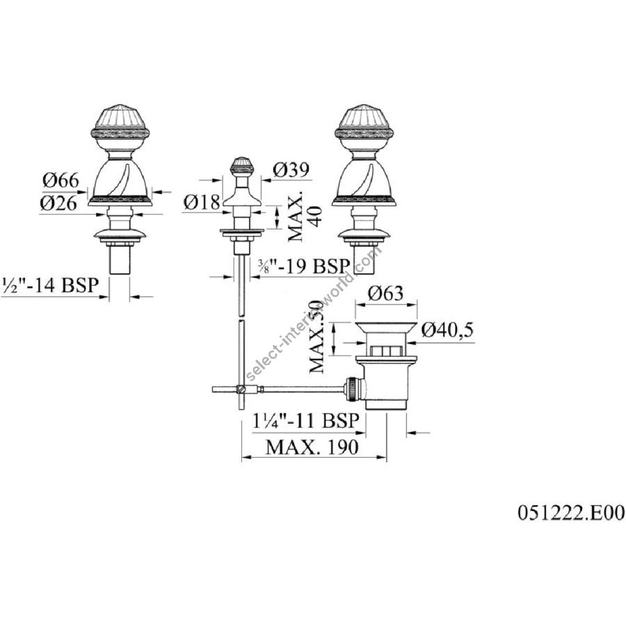 Bronces Mestre / Bidet Fittings / Three holes bidet set with porcelain twisted 233521.SL00.50
