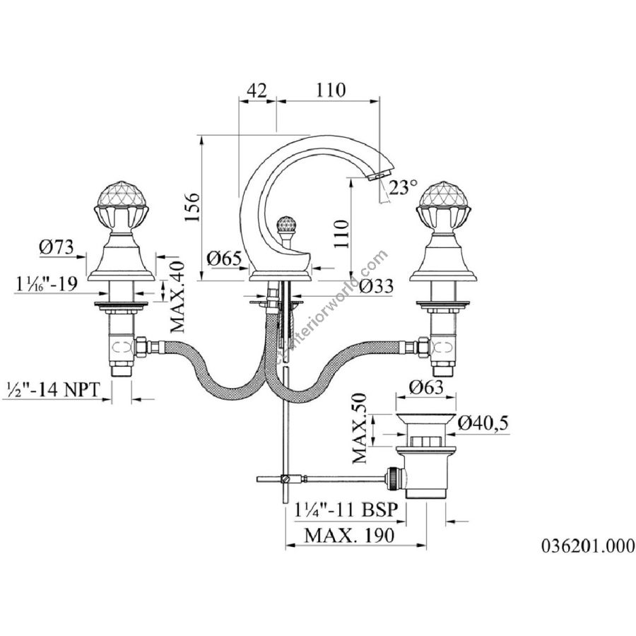 Bronces Mestre / Washbasin Fittings / Three holes basin set with Swarovski 271001.PH0.50