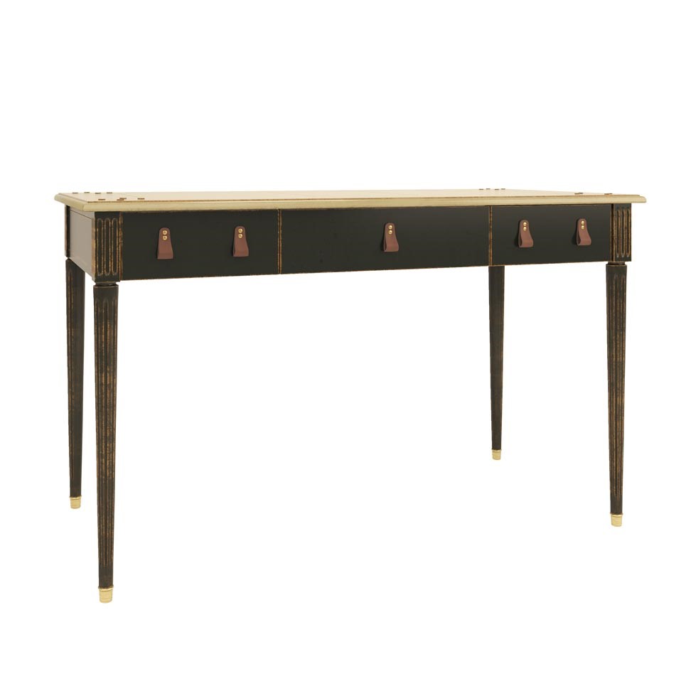 Scrivania Codice: 7250 Finiture: EBA - Ebano PB - Ottone lucido Pelle: NOR03 Dimensioni: cm. 240 x 90 x 77 h. Writing Desk Code: 7250 Finishing: EBA - Ebano PB - Polished Brass Leather: NOR03 Dimensions: cm. 240 x 90 x 77 h.