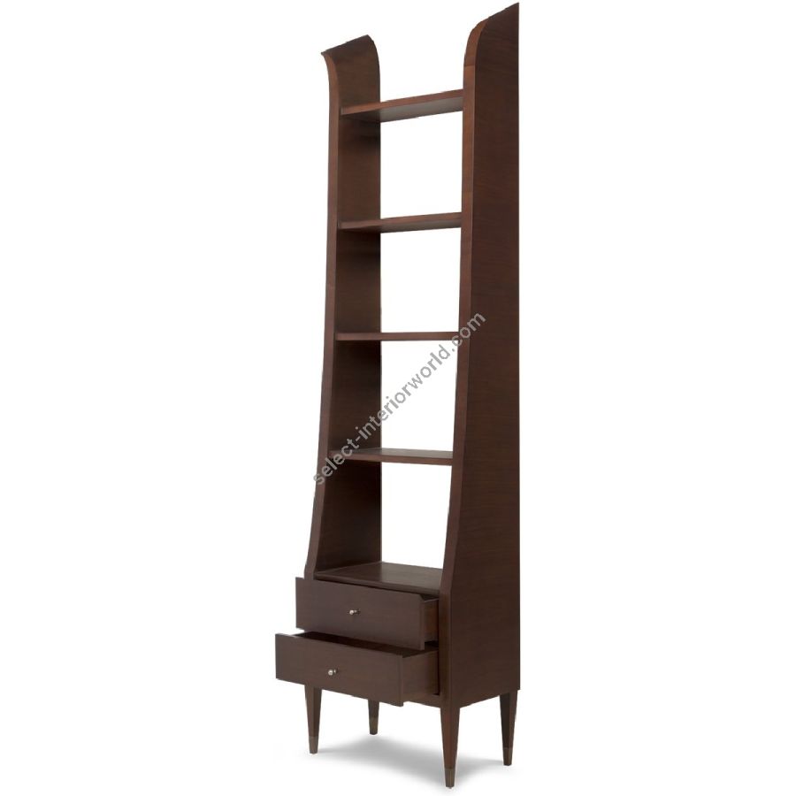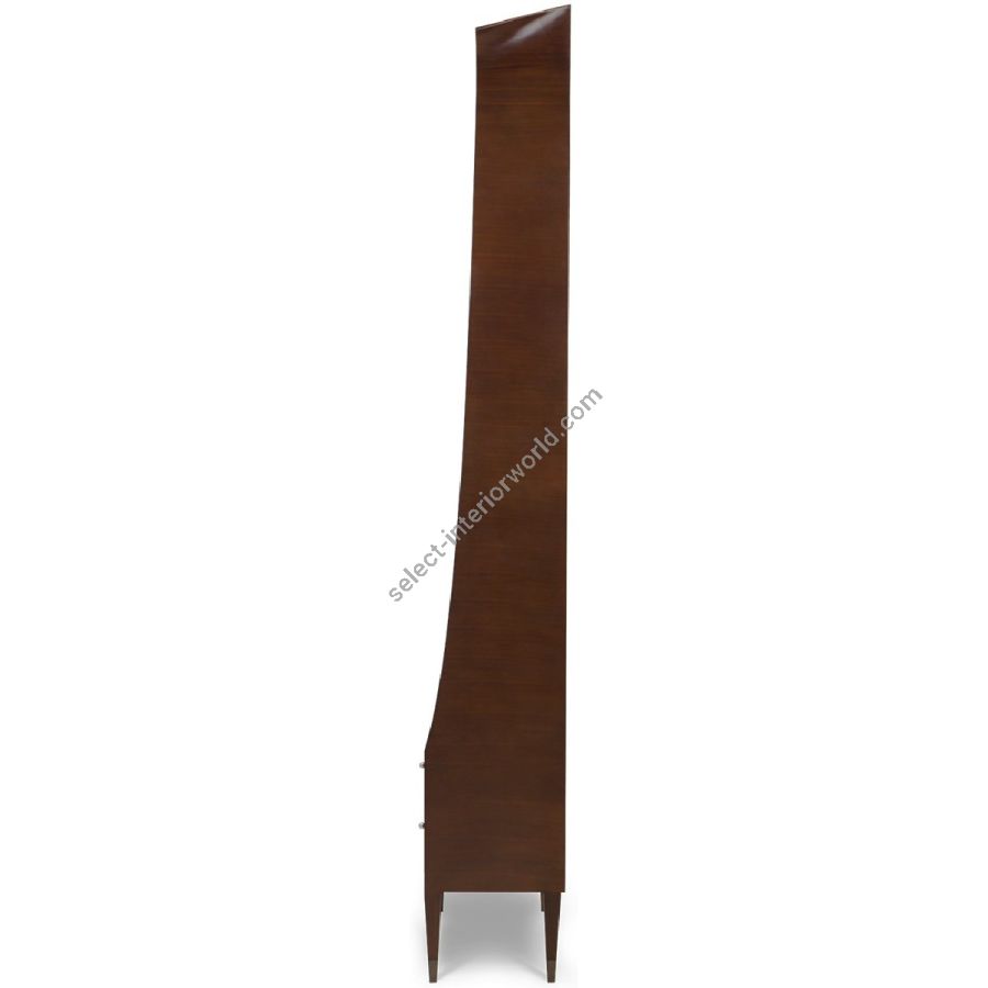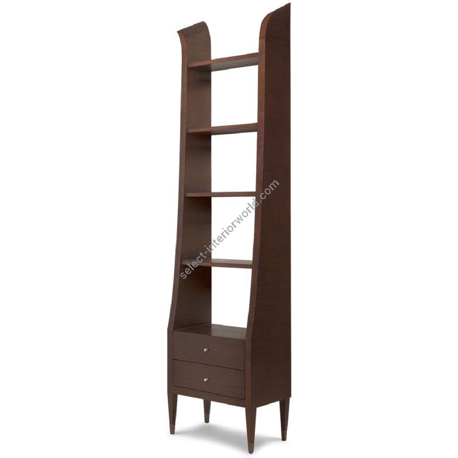 A superb tall bookcase/display case with a slender outline, whose form raises into hand carved winglets. The case features five fixed shelves, two drawers and metal cap feet, providing the ultimate display elegance. Also available in shorter versions 87-0010 and 87-0011