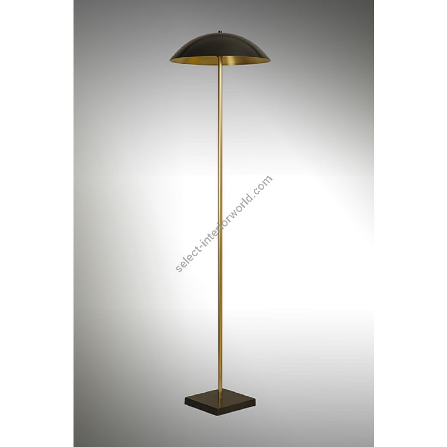Floor lamp made in brass. Made with a round tube overcame by a cup, and on a square base. This art deco lamp gives a touch of vintage elegance to your interior. Available in black or bicolor (black andmatt gold) patina.