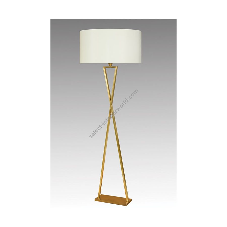 Floor lamp made in brass. Made with 2 rectangular tubes making triangles on a rectangular base. This floor lamp with an original and elegant geometric design will bring a touch of modernism in your interior. Available in black or matt gold patina. This model is also available in table lamp (L196) and in wall light (AL196). Presented lamp shade in white cream chintz in a cylindrical shape (see other available shapes and colours).