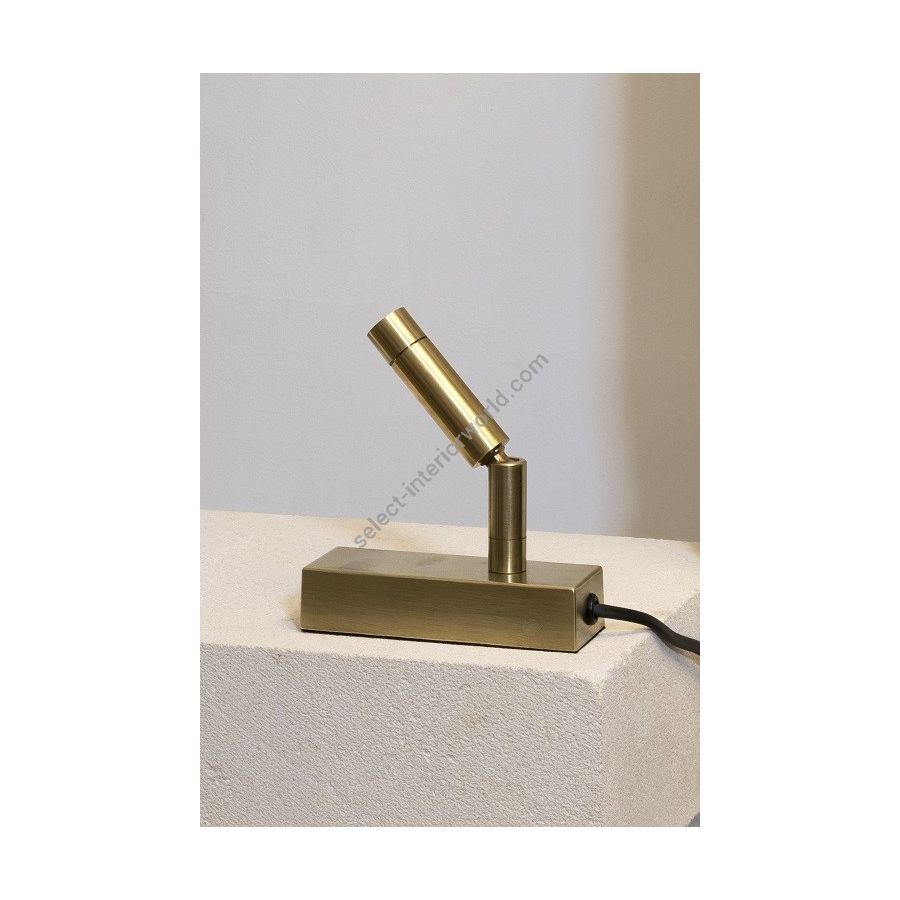 Table spot made in brass It is made with a cylindrical led light on a rectangular base This table spot with a sober and elegant design highlights a painting, a sculpture, a furniture Available in black or matt gold patina