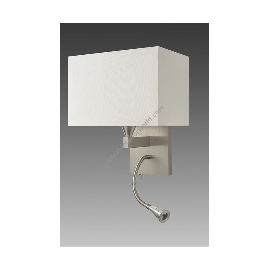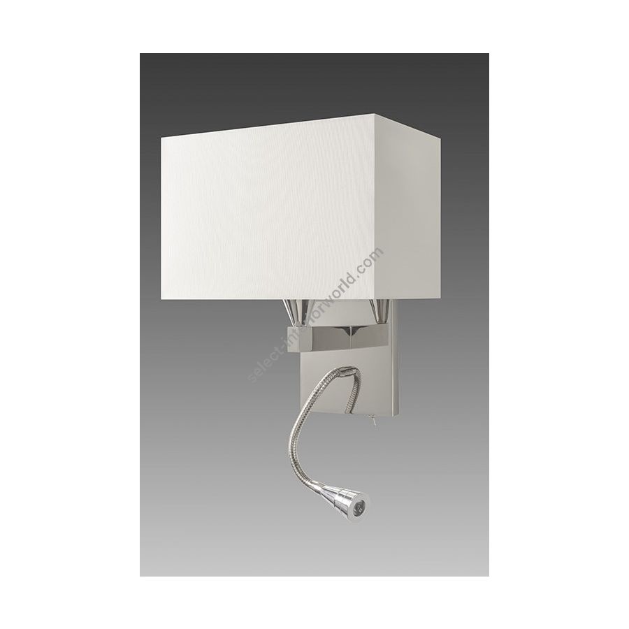 Wall light with Led light made in brass. Made with a fixed arm on a rectangular base and a Led light, on a 20cm flex with switch. This elegant wall light gives an ambiance or direct light. Possibility of a second switch on demand. Available in black or matt gold patina, and in nickel or brushed nickel. Presented lamp shade in white cotton chintz in a rectangular shape (see other available shapes and colours)