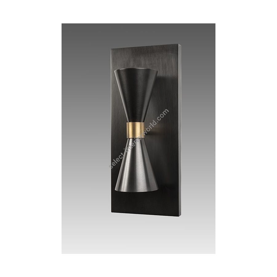 Wall light made in brass. Made with 2 cones on a rectangular base. This wall light gives a touch of contemporary design to your interior. Available in black or matt gold or bicolor(black and matt gold) patina