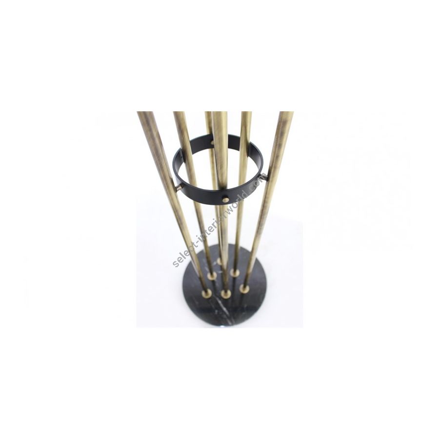 Composed of a gold-plated brass structure that contrasts with the black Marquina marble base, this one-of-a-kind piece of furniture endows a sense of magnificence that is not often seen. The piece’s final touch is the shade’s shape, artfully crafted to resemble a canna flower blooming on a warm summer day.