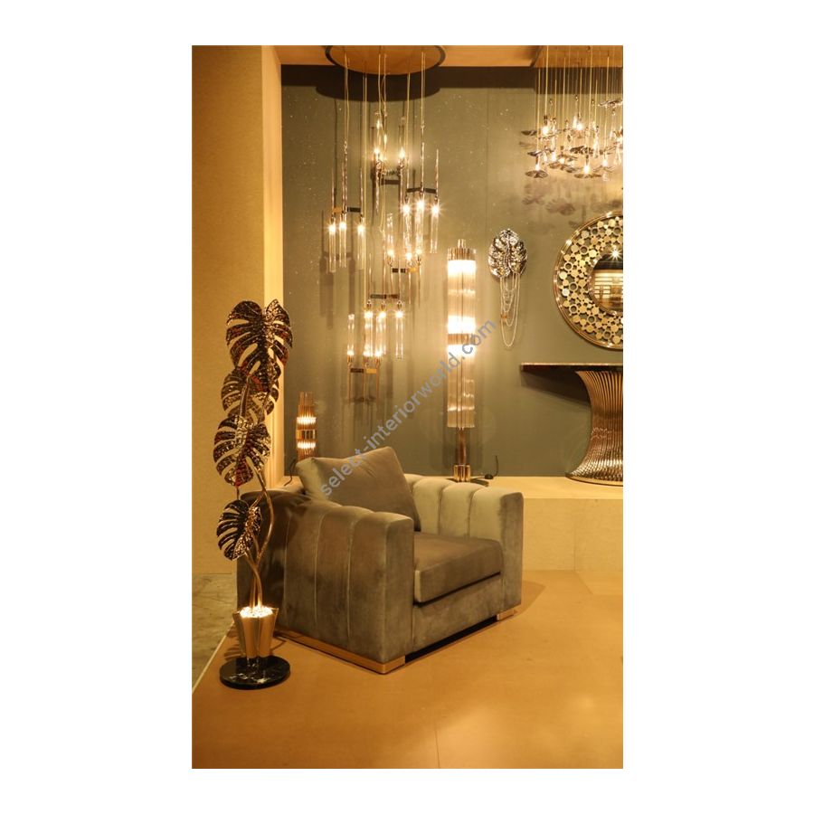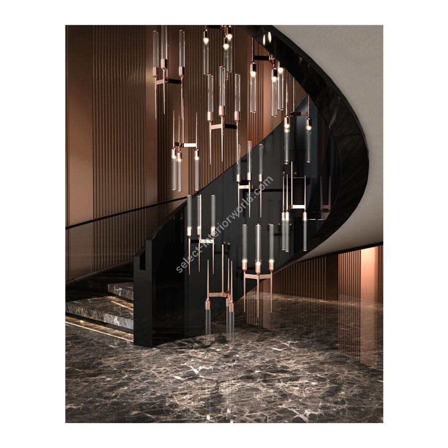 The Cielo Collection is the dynamic way of conceiving the world and the joy of discovery and wonder. The luxury oasis is waiting, imagine the calcite forms decorations that hang from the ceiling – stalactites with multi-coloured lighting that splits through rocks to glow in the dark. This time, Castro Lighting carries its manufacturing traditions transforming them into contemporary interior aesthetics – a minimal yet artistic expression of the modern lighting design within natural wonders. Brass finishes, textures, glass curves – the customization options are limitless. The Cielo suspension lamp proudly bears the name which in Italian is related to sky or heaven.