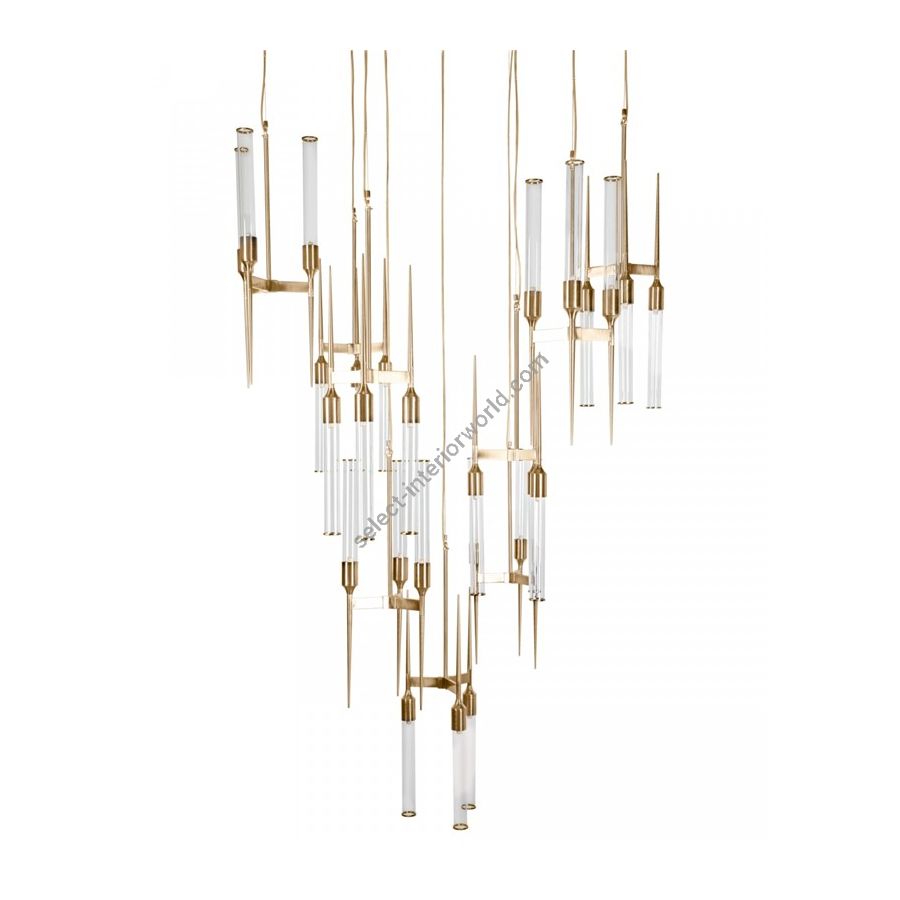 The Cielo handcrafted gold suspension is the perfect choice for the interiors with modern classic style, contemporary vibes, as well as the art-deco touch. Feel the powerful energy of this suspension which brass elements complement the refinement of the interior and permit to reveal a new meaning of beauty. Simplicity, smooth texture, and clean glass lines help define this contemporary lighting design as the signature collection fitting to the most exquisite decors.