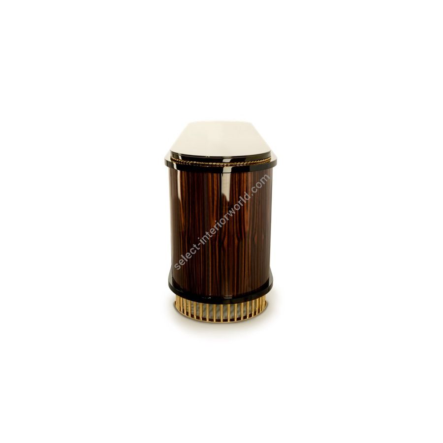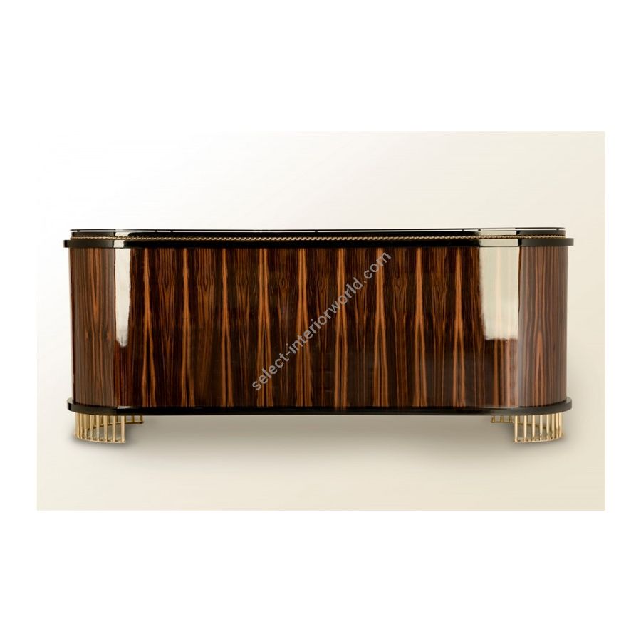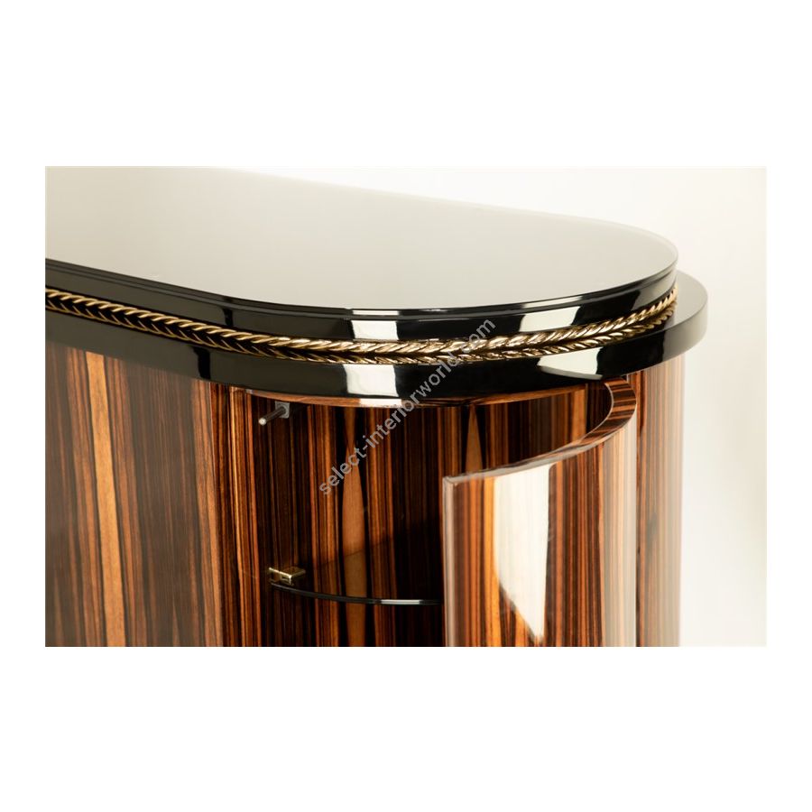 This furniture piece was designed to impress with the unique avant-garde yet elegant design, having a modern touch at its core. This sideboard is composed of carefully selected premium materials like wood, glass, and brass being accomplished with a high gloss black lacquered finish. The sideboard’s Ebony veneer wood structure is complemented with clear glass and sleek brass lines, emphasizing the strong masculine character of this design. It is an eye-catching furniture figure, as this lifestyle element masterfully reflects the beauty of craftsmanship implemented in its production. Balancing comfort and artistic perception, the Nautilus sideboard incorporates the sense of style that distinguishes this exclusive model from other sideboards.