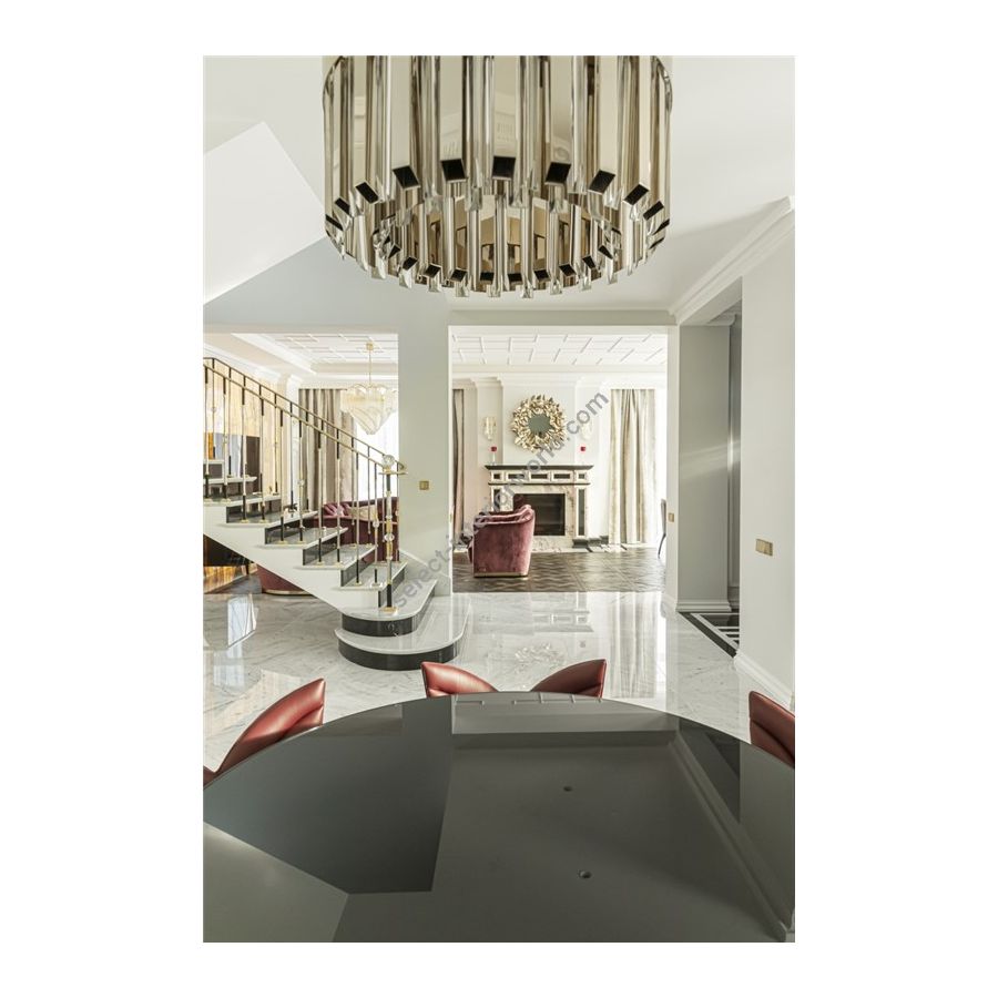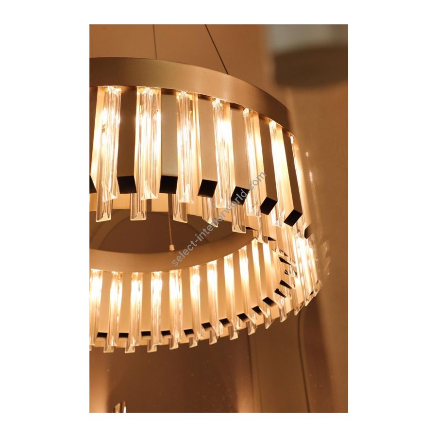 The Skylar Suspension is a stunning glass and brass chandelier that is a “one in a million”. Designed to impress, it brings a special allure and refined lighting detail to the most exquisite interiors. The artistically fulfilled lighting fixture is made of brass with a gold-plated finish, visually intercalated with mesmerizing glass.