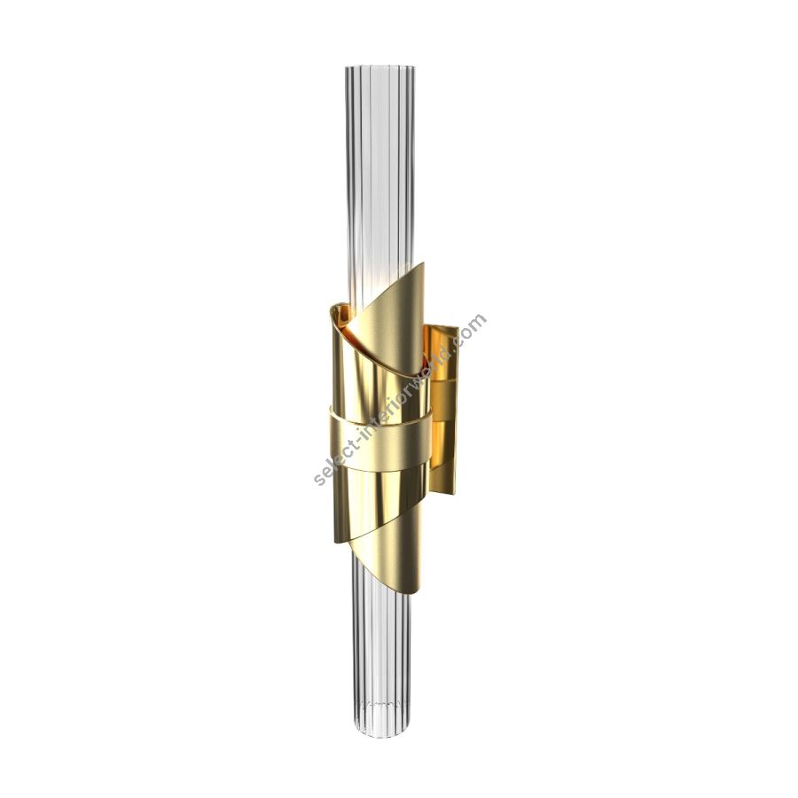This wall light draws inspiration from the dynamic energy generated by turbines, symbolizing modern innovation and power. At its core, the gold-plated and nickel brass structure elegantly supports a refined glass bulb, transforming noble materials into a contemporary lighting masterpiece.