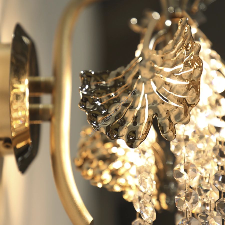 The golden leaves, sculpted in gold-plated brass, radiate natural beauty and a sense of calm. Their organic flow brings harmony into refined interiors. Crystal details, reminiscent of grape clusters, create a luminous cascade, adding sophistication and depth. More than just a decorative wall lamp, Tuscania is a sculptural lighting piece — a tribute to Portuguese artistry and the beauty of nature in its most graceful form.
