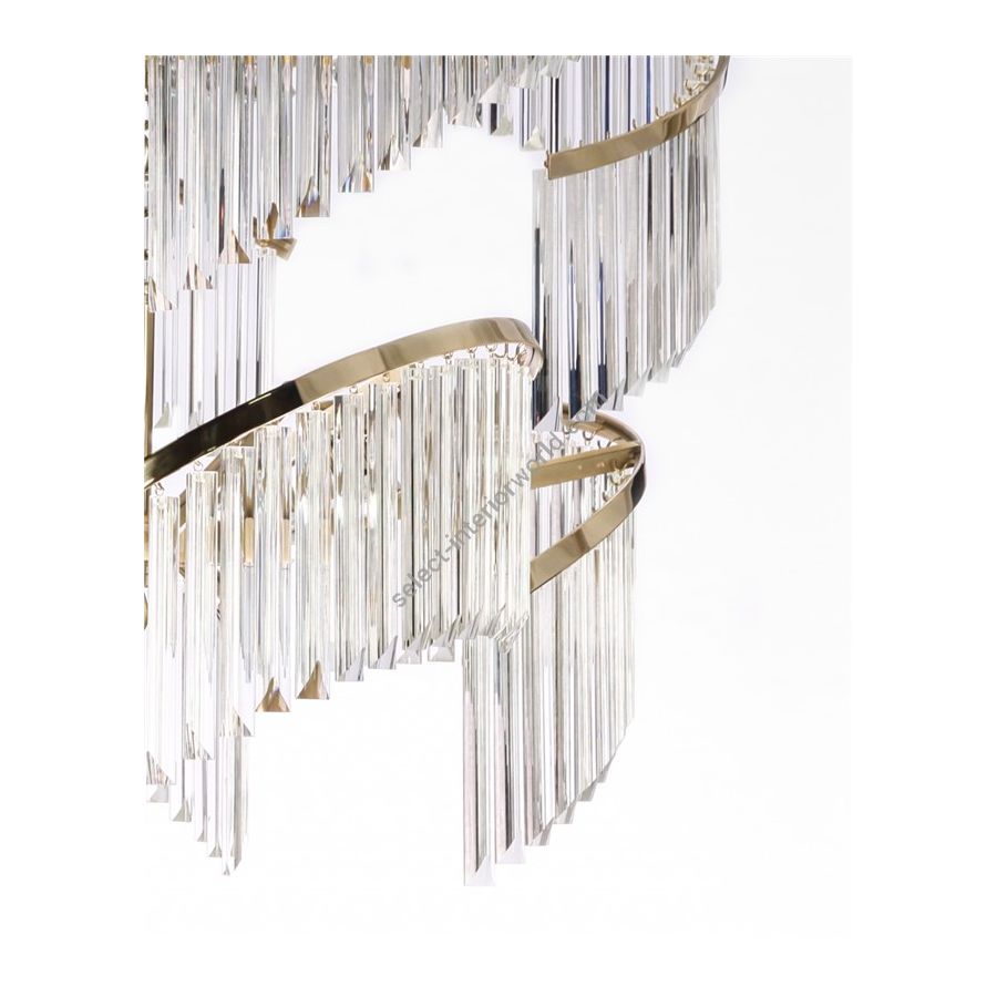 Twist suspension materializes the concept of twist in its design. The combination between the glass and the gold plated brass structure gives this one of a kind handmade lighting piece a sense of refinement that is unusually seen. This elegant design reminds the famous Victoria waterfalls in Zimbabwe as it gives the illusion of falling water.