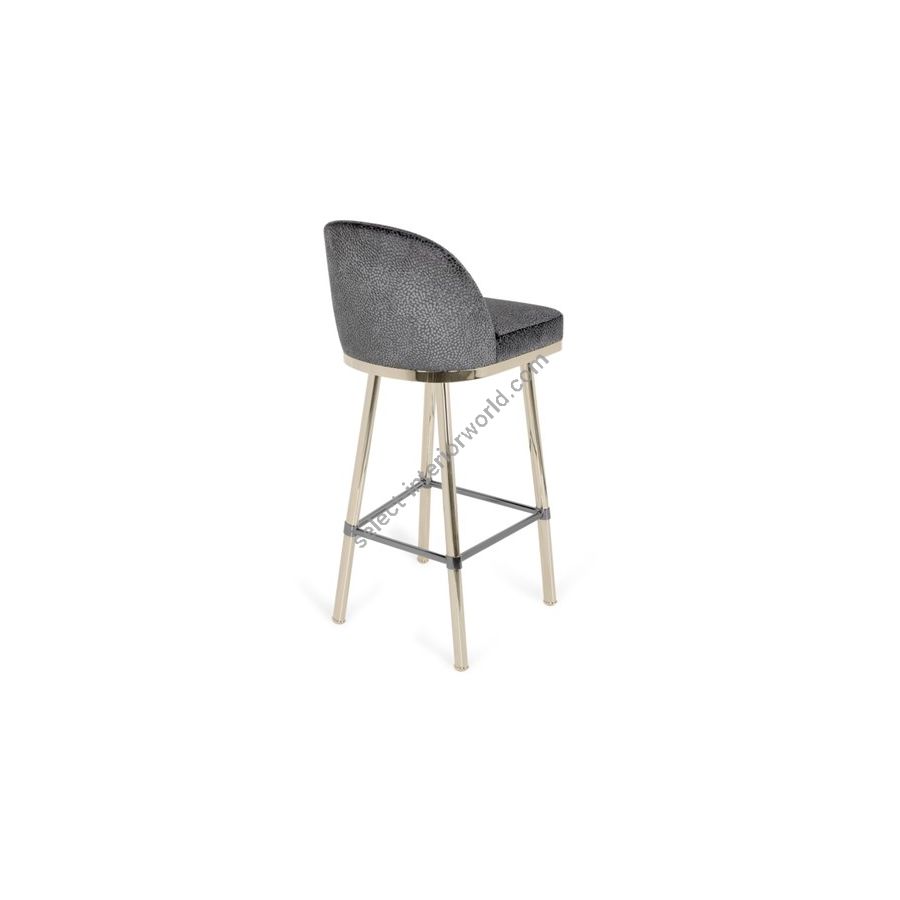 This elegant bar stool features polished brass legs with details of black nickel, it gives an exclusive and deluxe look, setting up a seductive appearance to the body that features rich materials like fabric, gold-plated brass, and plated black nickel. With an art-deco feeling, this luxurious handmade bar stool, brings youth and elegance to any modern bar space.