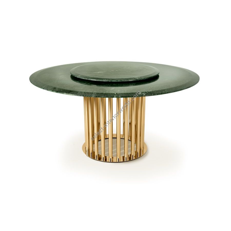 Charlotte Ring Dining Table features long gold-plated brass tubes. As support for a Guatemala Marble top-placed beautifully. It gives the design a sense of refinement and boldness. This modern table has a special characteristic that makes it magnificent and distinguish: It has a rotating table top that can be added to the piece or removed. However, it is undeniable the chicness and glamour it adds to the whole design.