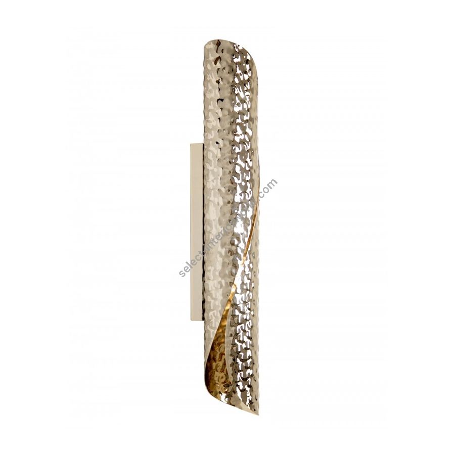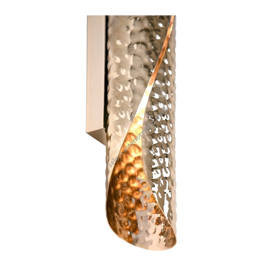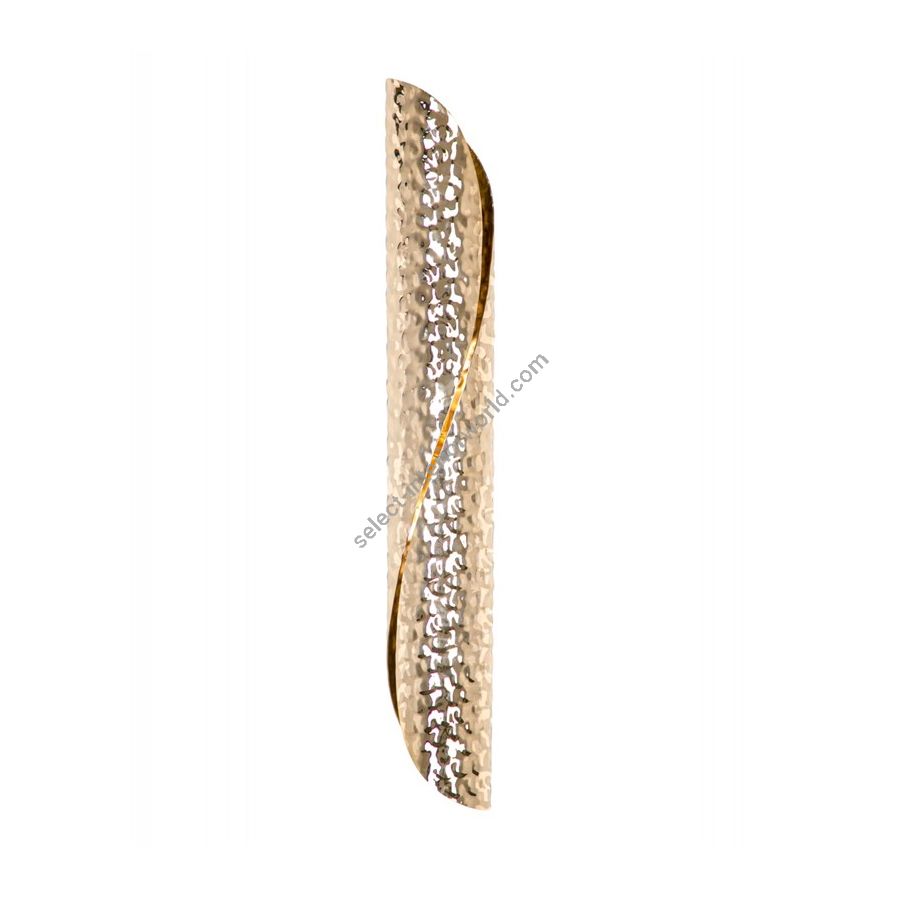 The Elven wall sconce resembles a beautifully balanced curve that twists like a shell, as its gold-plated brass tube is bent and hammered by the hands of experienced craftsmen. Designed to be a breathtaking and glitzy highlight to an interior design project, it combines modern simplicity with an elegant and luxurious touch.